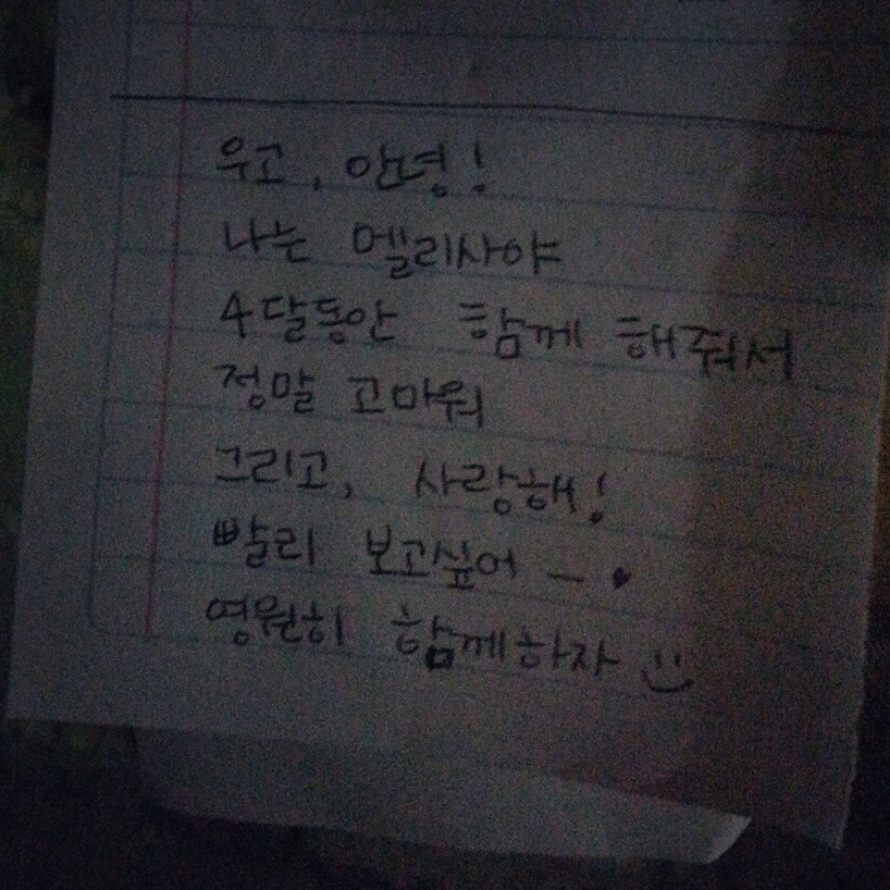 한 축제에서 사람들과 이야기하다가 한글을 보여줄 수 있냐고 해서 조금 써서 보여주었다. 몇 명에게 멕시코 이름을 한글로 써서 보여 주었다. 또 한 두 명씩 모여들기 시작했다(!) 마치 싸인을 해 주듯 계속 한국어를 써 줬는데, 생각보다 반응이 너무 좋았다. 어떤 친구는 남자 친구에게 하고 싶은 말을 한국어 편지로 부탁했다. 간단하게 불러주는 대로 의역해서 써 줬는데, 그 친구가 너무너무 기뻐했다. 나도 이렇게 간단한 방법으로 특별한 선물을 줄 수 있다는 게 좋았다. 이렇게 작은 걸로도 행복해 하는 그들의 순수함이 예쁘다.