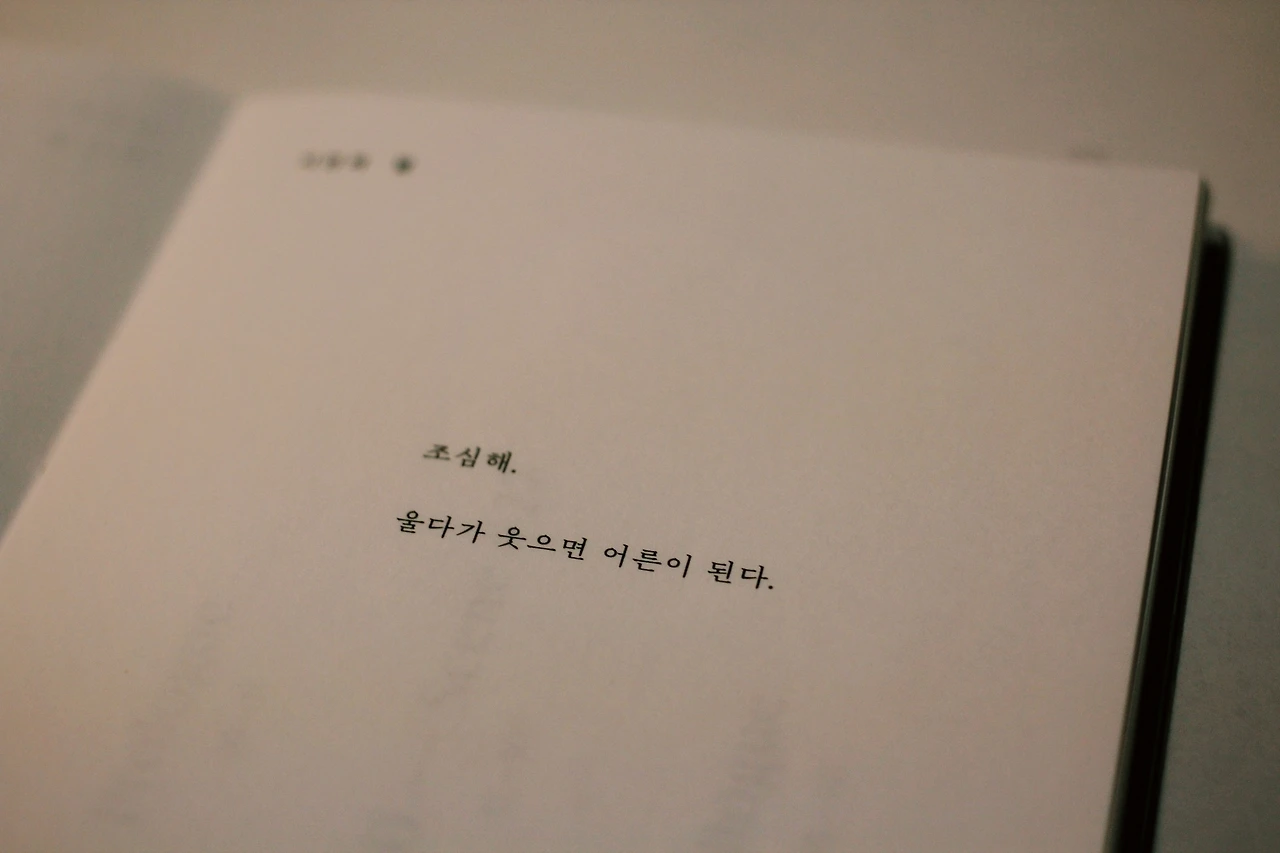 책의 맨 첫 장에는 이런 문장이 있었다. '조심해. 울다가 웃으면 어른이 된다.' 나는 충격을 받고 말았다. 나, 어른이었어? 이 내가……? 어른의 조건이 울다가 웃는 것이라면, 나는 도대체 얼마나 성숙한 어른이란 말인가. 말도 안 돼. 믿을 수 없어욧! 나는 뒷걸음질 친다. 아니야, 어른은 고작 이런 게 아니야. 난 그냥 울 테야. 난 그냥 웃을 테야.