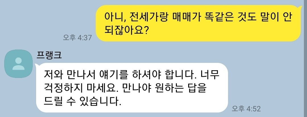 실랑이가 오가는 동안 프랭크는 여러 차례 '대면 만남'을 요구했다. 브라더 씨는 프랭크의 사무실에 웬만하면 가지 말라고 했다. 저런 사람들 때문에 부동산 하는 사람들이 싸잡아 욕먹는다고 억울해하며 '양아치 같은 놈들'이라고 했다. 국어사전에서 양아치를 찾아봤다.
