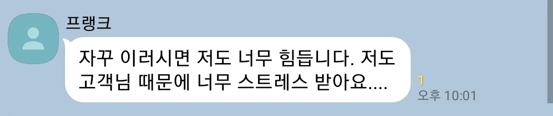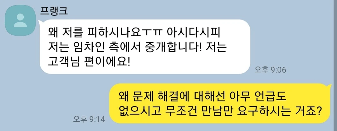 진전 없는 대화가 반복되었고, 프랭크는 급기야"그렇게 자신 있으면 구청 가세요"라고 당당하게 나왔다. 결국 구청에 갔다. 방문 2회, 전화 1회로 같은 내용을 호소했으나 구청의 답변을 요약하면 이러했다.