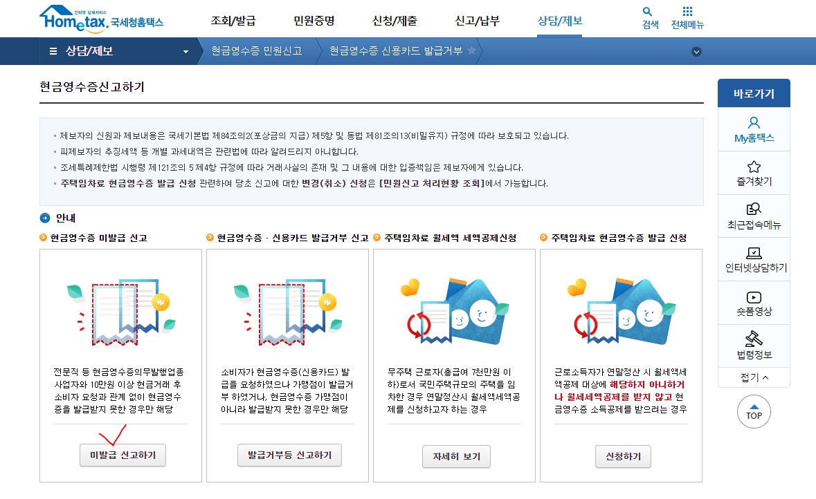 2. 국세청에 현금영수증 미발급 건으로 신고했다. 이는 현장 경험이 많은 브라더 씨이기에 알려줄 수 있는 정보였는데, 중개보수료 현금영수증은 통상적으로 그냥 넘어갈 때가 많지만, 엄격하게 따지면 이것도 신고할 수 있는 부분이라고 했다.
