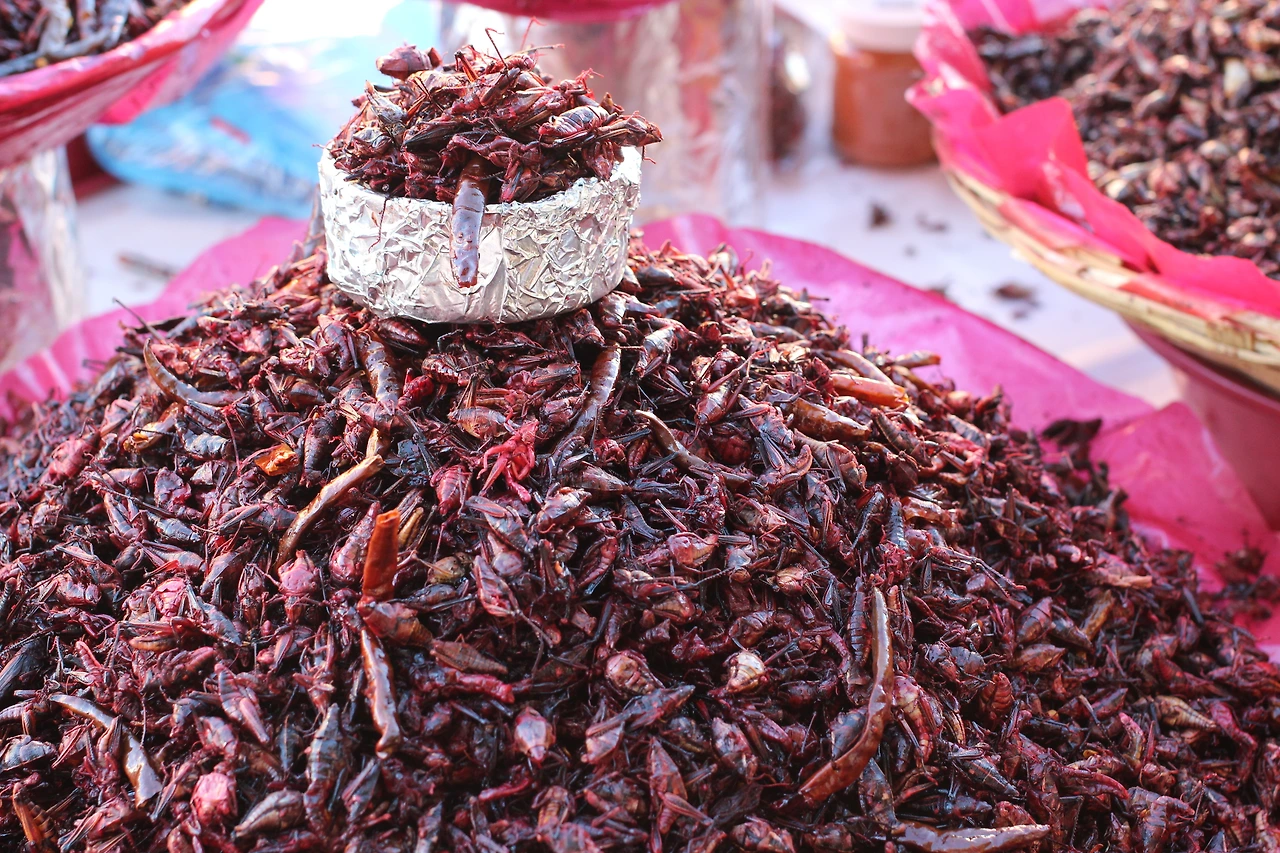 멕시코 시장 어딜 가나 볼 수 있는 벌레들. 보기엔 징그럽지만 먹어보면 의외로 고소하다는 (이미 완벽 적응) 초기에 멕시코 친구들이 시장에서 먹어보라며 부추기고 우리의 반응을 보며 즐거워했는데, 그때도 맛보기 정도는 그냥 주셨듯 여기서도 주인아주머니가 시식용으로 흔쾌히 주셨다.