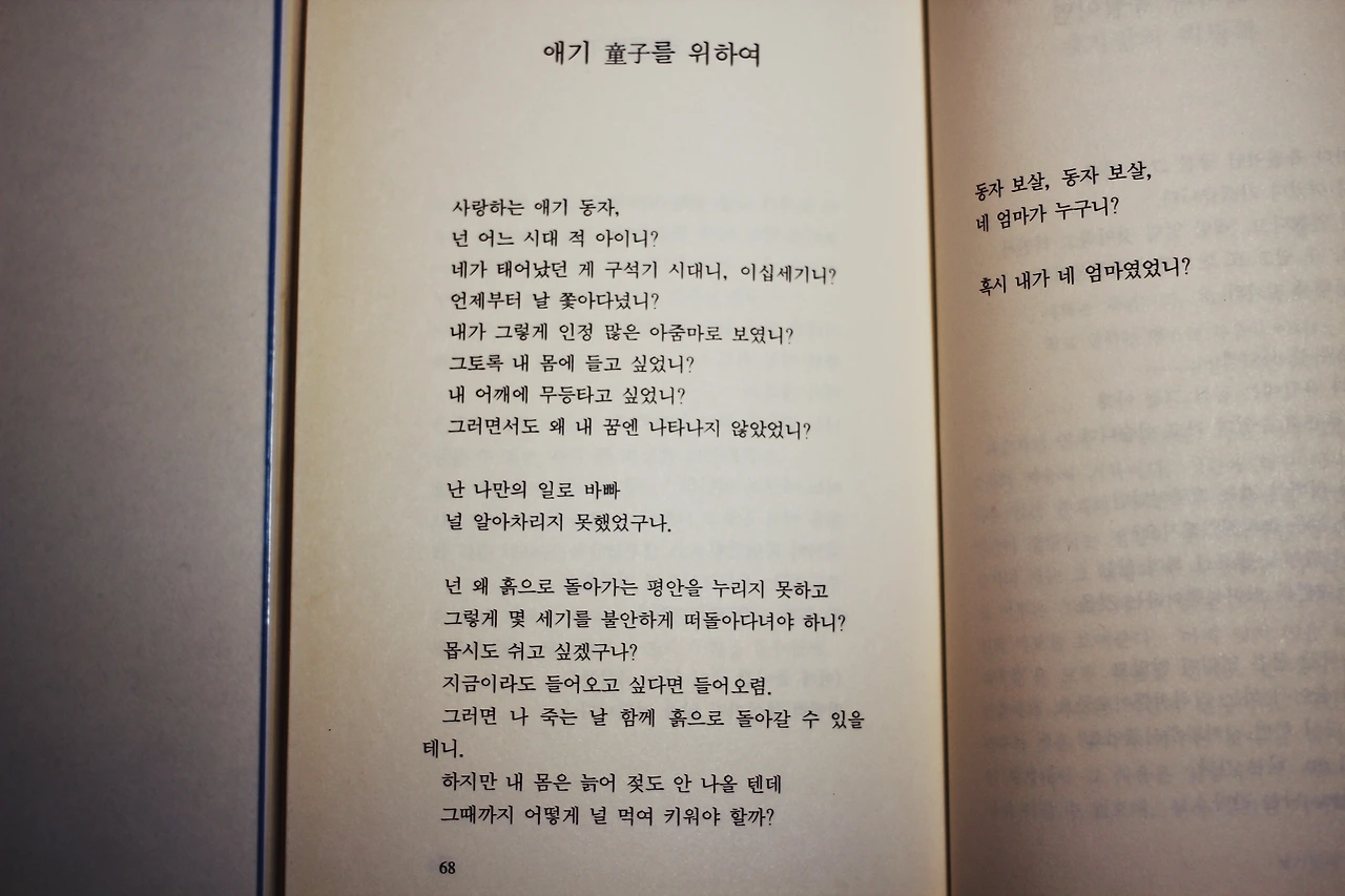 사랑하는 애기 동자, 이리 오련. 네 엄마야. 오늘 엄마가 기분이 좋아.