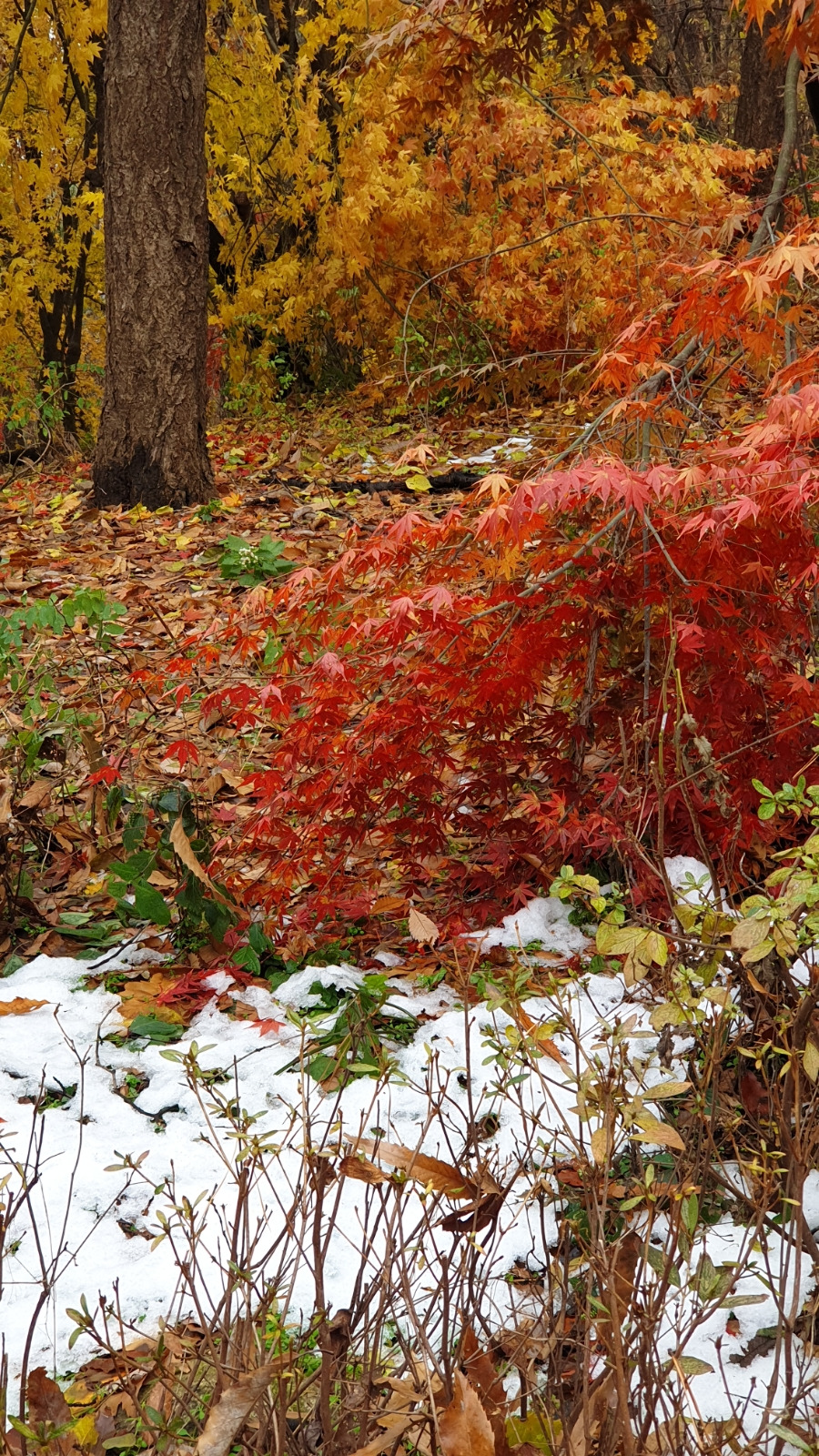 12월에도 여전히 깊어가는 단풍나무들도 있다. 생각해 보면 저들은 며칠 전 내린 폭설도 이겨낸 아이들이다. 저들이야말로 열매 아닌가.