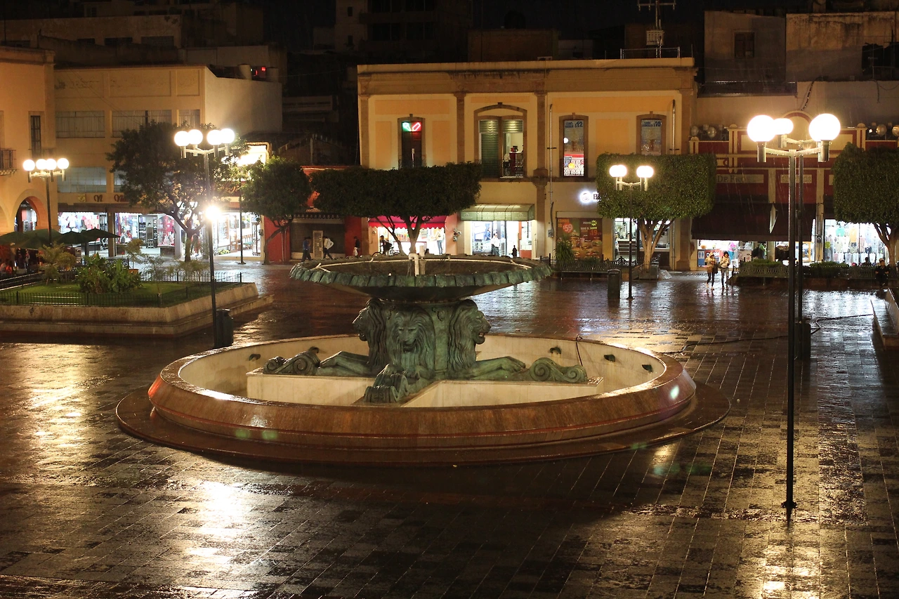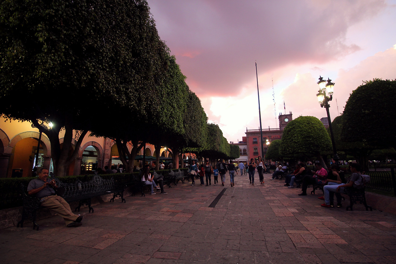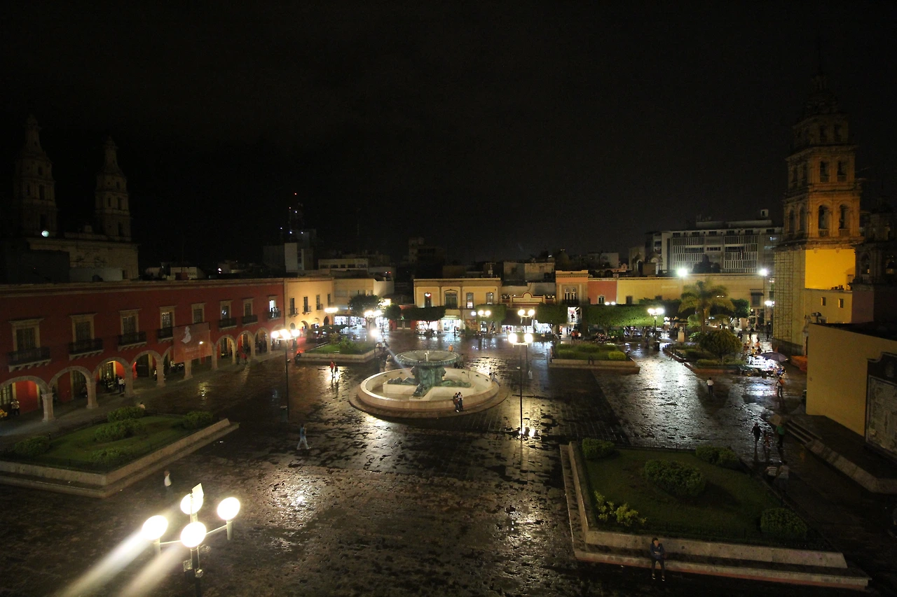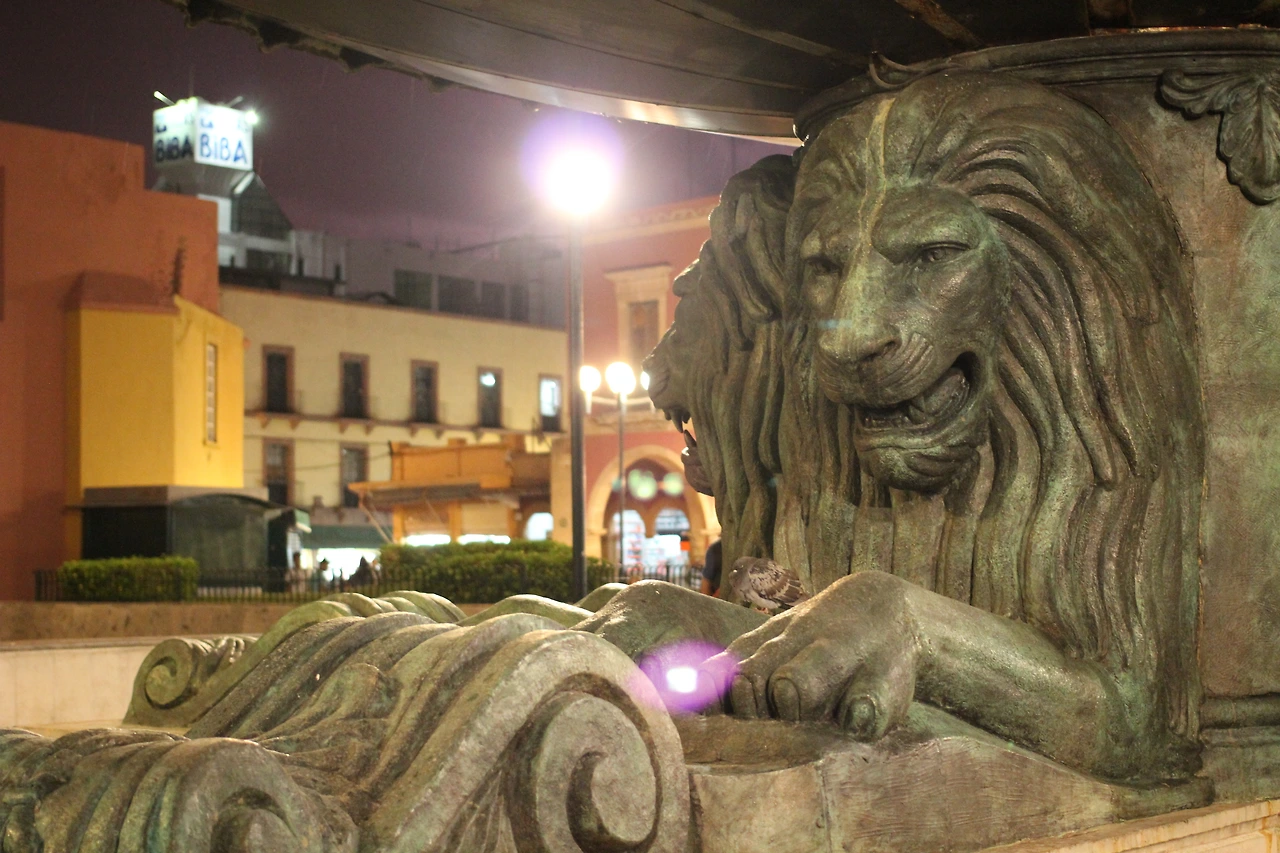 어느 도시에 가나 가장 중심에 있는 센뜨로 광장. 사자 분수대, 성당, 시청, 각종 레스토랑이 이 근처에 밀집해 있다. 앞에 소개한 성당과도 멀지 않다. 나는 이곳 쏘깔로의 모습이 과나후아또랑 좀 닮았다고 생각했는데, 아마 네모난 모양으로 오밀조밀하게 정리되어 있는 나무들과 평화로운 분위기 때문인 것 같다. 이날 나는 노을에 정신이 팔려서 낮의 모습을 사진으로 남긴 것이 없는데, 낮의 인상은 한마디로 그냥 '초록초록'하다. 앉아서 쉬어가거나 여유를 즐기기에 적당한 곳이다.