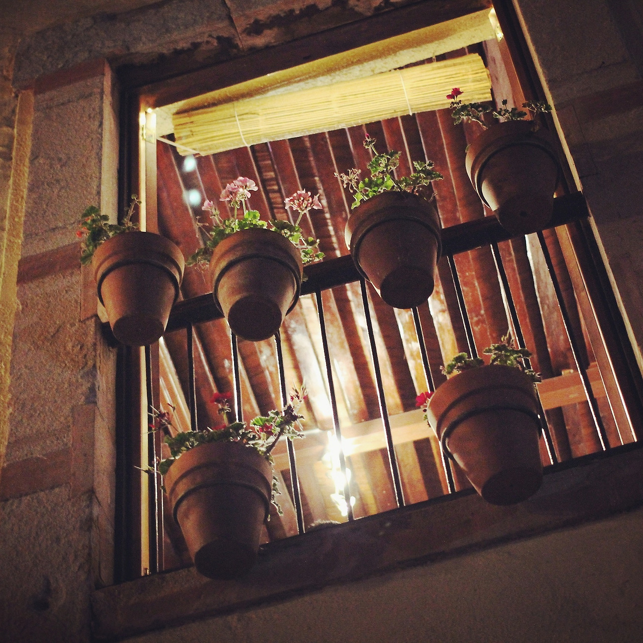 엘사가 보여준 사진도 정말 같은 장소에서 찍은 거였다. 우리 호스텔은 작은 다리 아래쪽의 좁은 골목길에 있었다. 그 다리 위에는 까페떼리아의 야외 테라스가 설치돼 있었는데 밤에 특히 아름다웠다.(사진▽) 사실 호스텔에 들어오는 길에 혼자 커피를 마시러 가 보았는데, 사람이 꽉 차 있어서 들어가 보지는 못했다. 대신 내가 정말 과나후아또스럽다고 느꼈던 창가의 화분을 사진으로 찍어두었던 것이다.