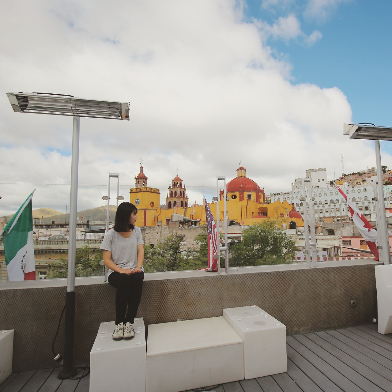 엘사를 따라서 호텔 곳곳에 있는 그림, 조각 등 예술 작품을 구경하고 그녀의 사무실에서 잠시 쉰 뒤, 루프탑까지 올라갔다. 호텔 위치가 워낙 중심에 있어서 전망이 좋았다. 노란 과나후아또 성당과 삐삘라 기념탑도 보였다. 아침에 돈키호테 박물관에는 못 갔지만, 생각지도 못한 장소에서 우연히 친구를 만나 새로운 각도의 과나후아또를 보게 된 것은 큰 행운이었다.