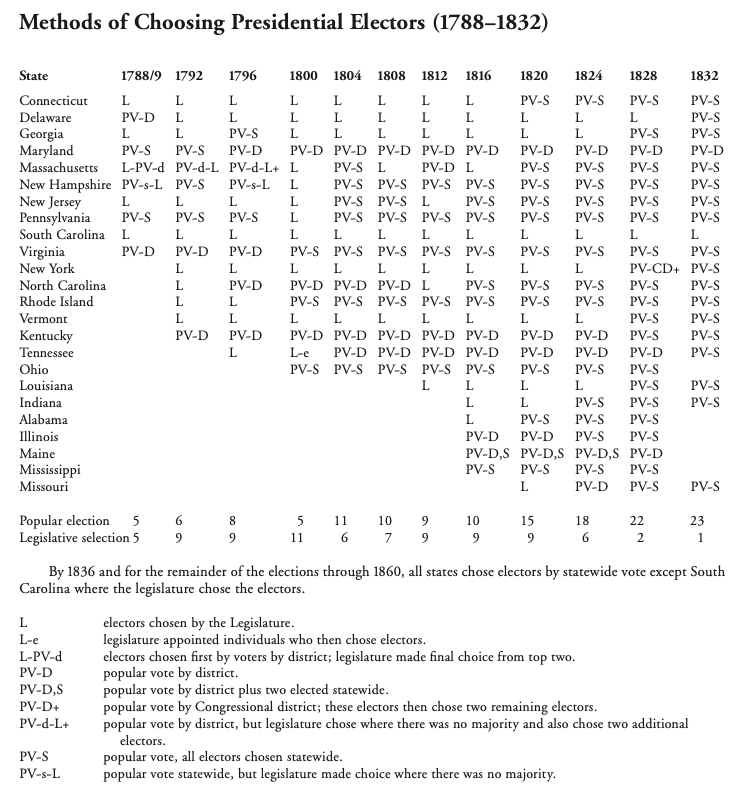 미국의 건국의 아버지들은 미국을 민주정이 아니라 공화정으로 여겼으며, 때문에 대통령 선거를 직선이 아니라 선거인단을 통한 간선으로 기획했다. 아직까지 이런 제도를 유지하는 것은 그들의 공공연한 반-민중, 반-민주주의 정서를 계속 승인하는 꼴이다.