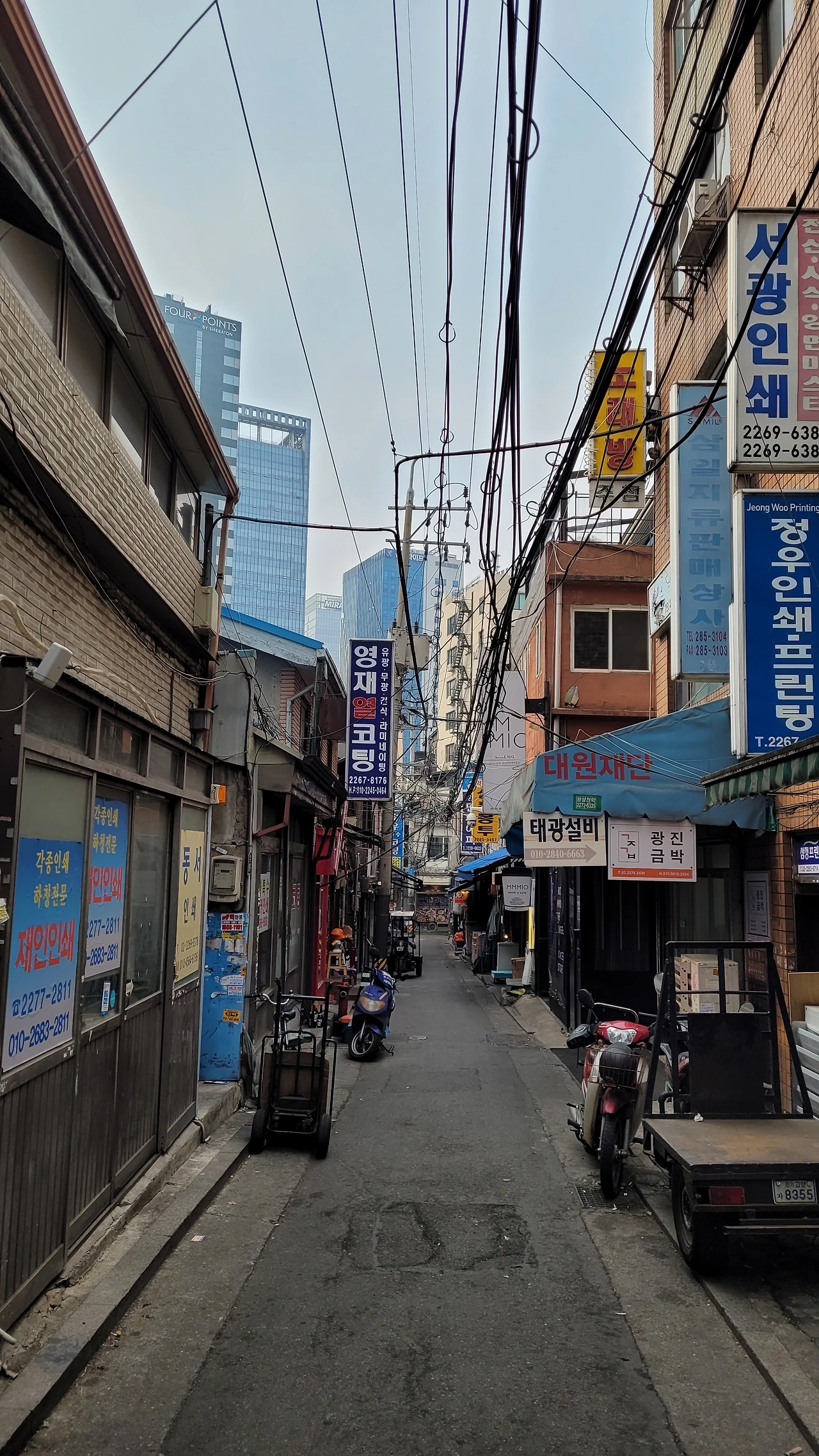 뜨거운 여름 공장에서 나오는 열기로 골목이 더 뜨거웠다. 인쇄 기름냄새와 종이 냄새가 섞이고 독특한 냄새가 골목을 채웠다. 거기에 인현시장에서 나오는 다양한 음식들의 냄새가 섞여 있는 골목은 저렴하지만 귀하다. 많은 사람들이 자신의 전문분야를 갖고 일하고 다른 사람들에게 일을 넘기며 최종본을 완성한다. 그렇게 서로 바쁠 때는 일을 넘기고 급한 일은 대신도 해주며 일을 빼냈다. 그런 곳들이 하나 둘 빠지고 인스타에 올리기 좋은 공간들이 점점 늘어나고 있는 것이다.
