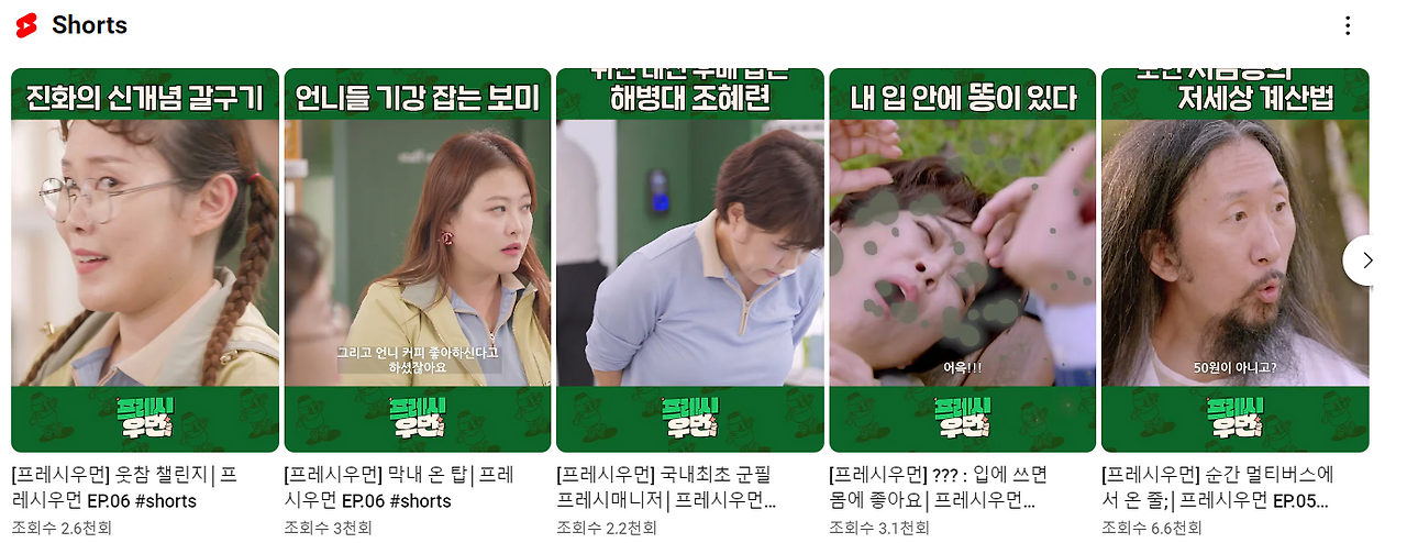 야쿠르트 전동차 코코 디자인은 많은 사람의 주목을 받았다. 야쿠르트 아줌마의 격을 올리고, 그 명칭도 프레쉬 매니저로 바꿨다. 프레쉬 매니저는 1만 1천 명에 달한다. 한국야쿠르트는 유튜브 채널 hy채널을 통해 다양한 영상 콘텐츠를 업로드하고 있다. 그중 하나가 프레시우먼. 에피소드 6이 올라왔다. 일상생활을 담아, 개그우먼이 열연하고 있는 쇼츠 영상도 계속 업로드하고 있다.