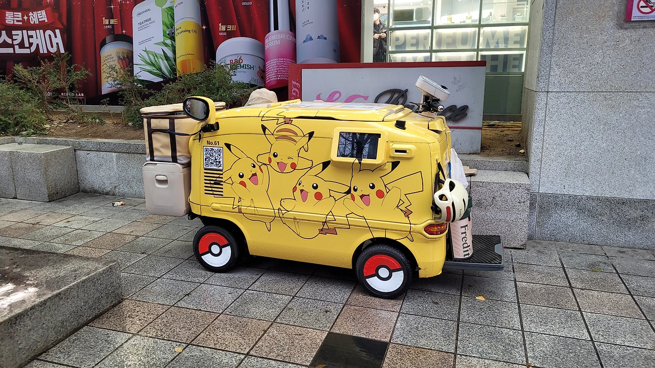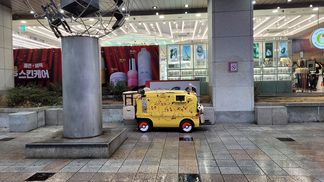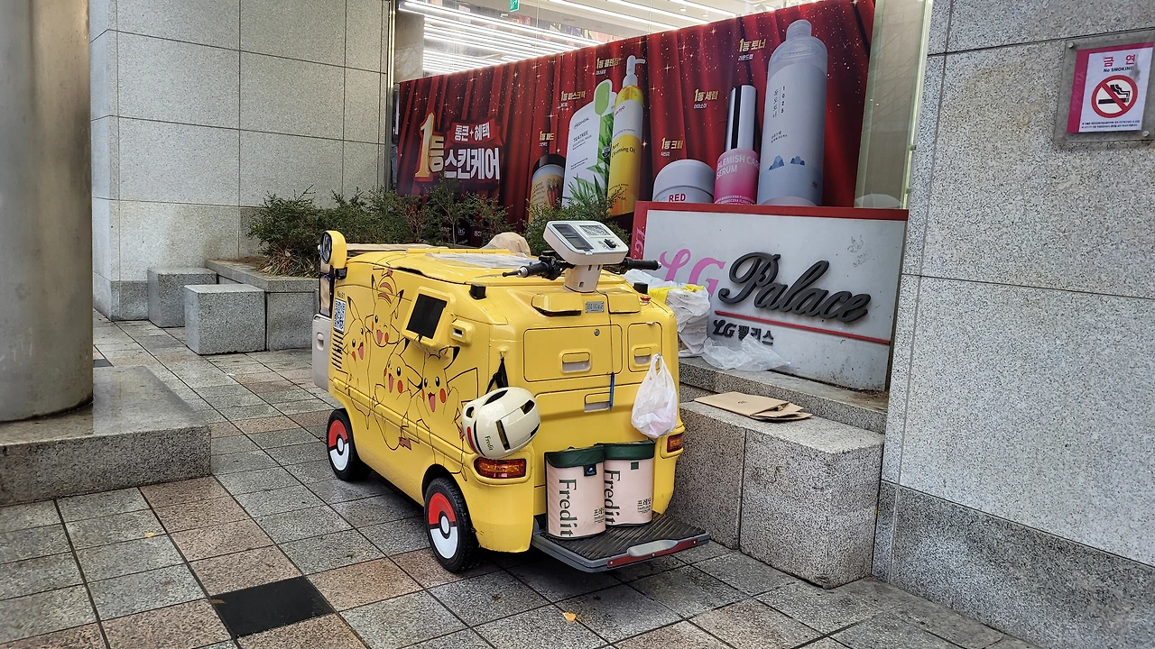 홍대입구역에 정차 중인 인상적인 전동차 '코코'를 발견했다. 프레시 매니저가 자신의 취향을 드러낸 것인지, 홍대 거리 특성을 살린 마케팅일까. 건물 내 배달 중인지, 매니저가 보이지 않아 묻지는 못했다. 다른 카트들은 어떤지 궁금하다.