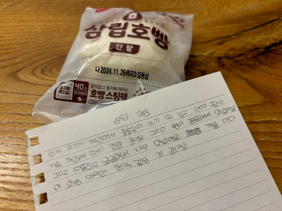 오늘까지 겨울 빵 글을 써보기로 마음먹었기에, 아이들에게 팁을 좀 얻을까 미끼를 던져두었다. 아파트 엘리베이터에는 신유빈의 광고가 계속 돌고 있었기에 군침을 흘리며 올라왔으리라. 학교 바로 끝나고 학원 가기 전, 딱 그 시간. 궁금하고 출출할 때 테이블 위의 호빵 한 박스. 안 물고 못 배기지.