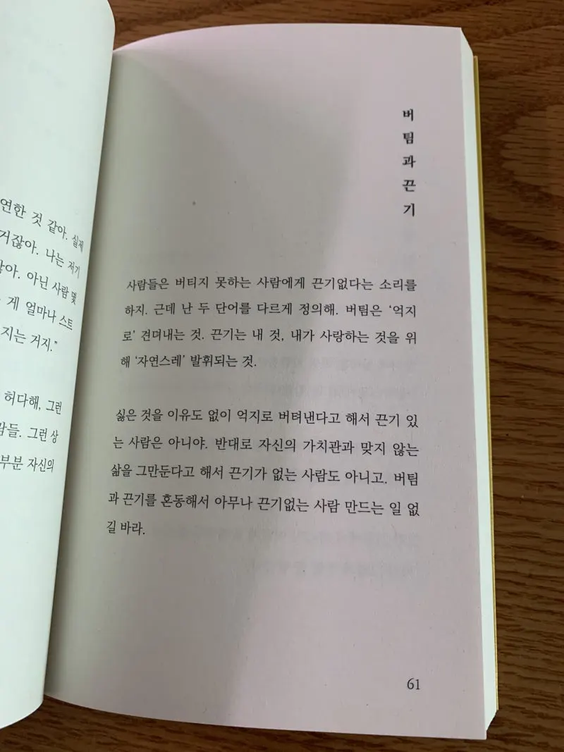 싫은 것을 이유도 없이 억지로 버텨낸다고 해서 끈기 있는 사람은 아니야