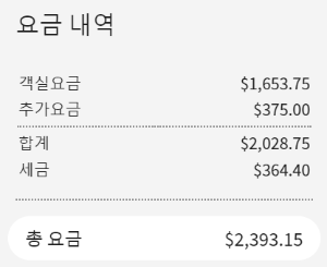 왼쪽은 20년 예약내역, 오른쪽은 23년 요금견적. 똑같은 호텔 5박인데 거의 50% 가까이 폭증했다