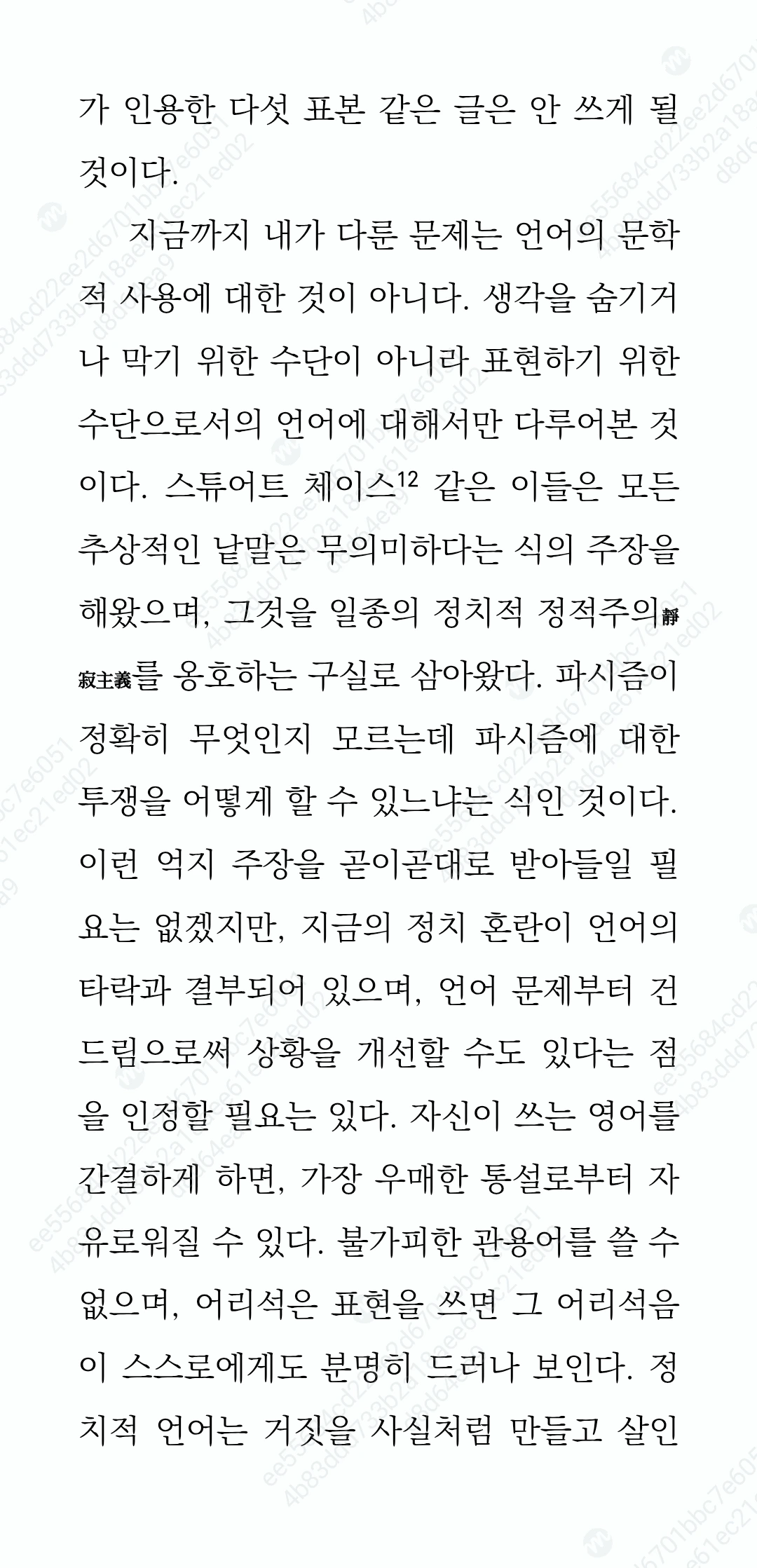 그는 정치적 언어가 인간의 사고를 어떻게 부패시키는지,