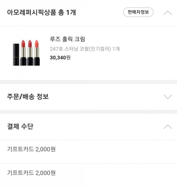 지출방어의 수단이 되는 총알이 많으면 이렇게 백화점에서는 3만7천원이나 줘야 하는 브랜드 립스틱을 0원에 구매할 수도 있다. 그 외 샴푸나 바디제품, 구강제품, 비누, 염색약 등 각종 생필품 들도 0원구매를 하고 있다. 가끔 실지출이 발생해도 1~2천원 내외의 아주 작은 금액이다. 쇼핑몰의 유료회원과 이벤트를 통해 받은 각종 적립금들이 지출방어의 수단이 된다. 사이트를 잘만 활용하면 투입한 금액 대비 수십배의 것들을 얻어낼 수 있기 때문에 유료회원임에도 불구하고 2년째 가입하고 있고 신랑 계정까지 중복으로 유료회원에 가입하여 혜택을 받고 있다. 이 부분에 대해서는 추후 다루도록 하겠다.