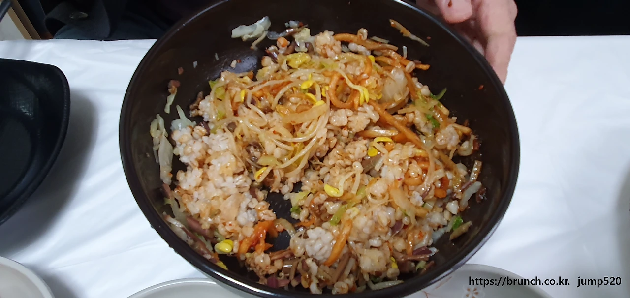 보리밥을 먹으러 갔다. 드라이브 삼아 변두리를 달려 보리밥 전문식당을 갔다. 식탁 위에는 보리밥과 더불어서 초록과 노랑 하얀과 갈색 흰색이 어우러지는 오색나물이 올라오고 된장찌개와 돼지고기볶음이 함께 올라와 온갖 영양소가 다 모여있는 듯하다.