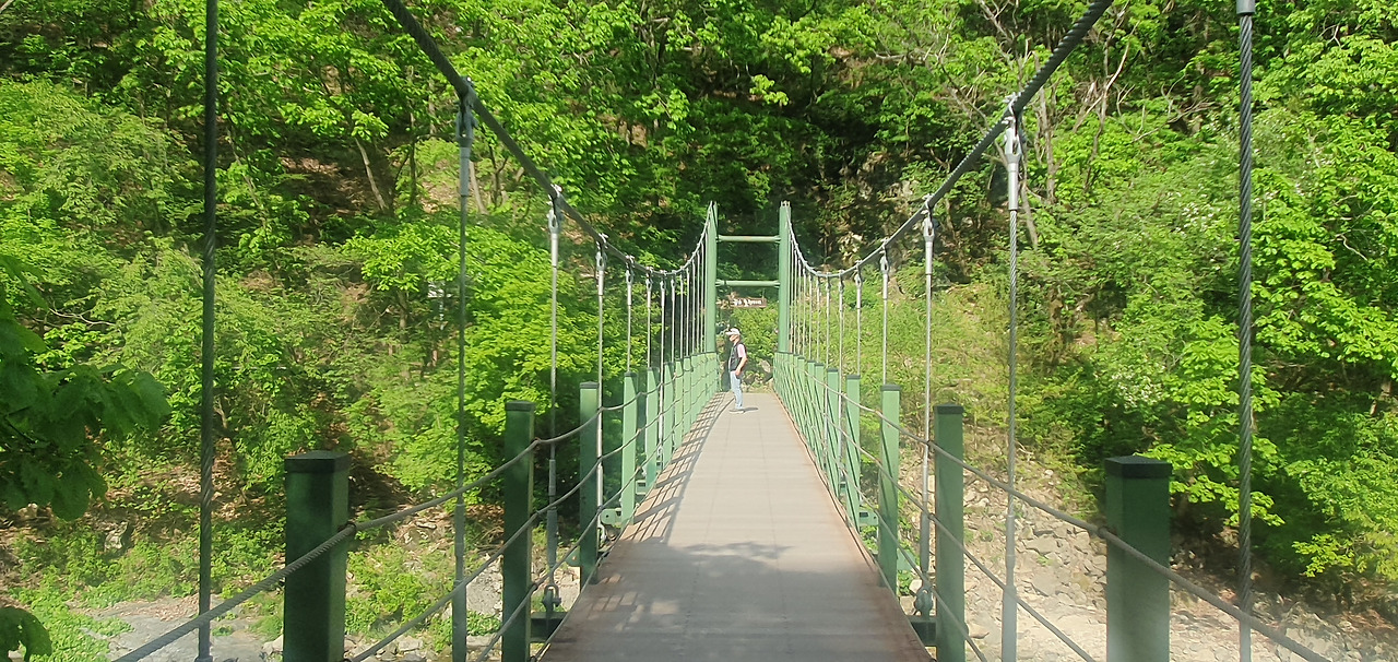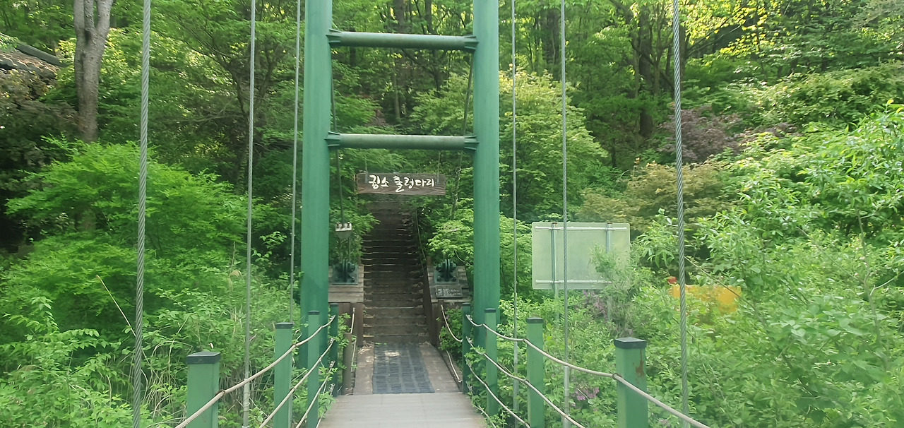 산에서도 말이 없이 걷는다. 꽃이 예쁘고 초록으로 피어오르는 나무들이 예쁘니 사진 찍고 동영상 찍느라 바쁘다. 말이 필요 없다. 자연과 이야기를 나누며 나는 그저 숲의 이야길 듣고 기억하고 기록하느라 말이 없었던 거다. 숲을 걷는 그 자체로 좋다. 그냥 수타사 부근의 숲 정원만 다녀가리라던 계획은 산속의 출렁다리까지 다녀오기로 했다. 남편의 희망사항이었으므로. 가는 길은 야자매트길이라 걷기 좋았다. 계곡의 물소리가 듣기 좋았고, 산 아래 언듯 언듯 계곡물도 보였다.