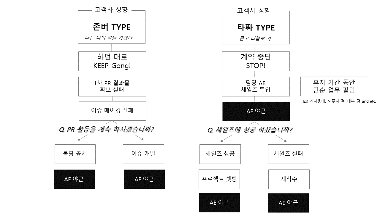 타짜형이 에이전시에 손실을 입히는 건 맞지만, 사실상 실무자 입장에서는 존버형도 고통받기는 마찬가지다. 다만 재정적인 손실이 나지 않으니 그냥 감내할 만한 것이라고 위안할 여지가 있달까.