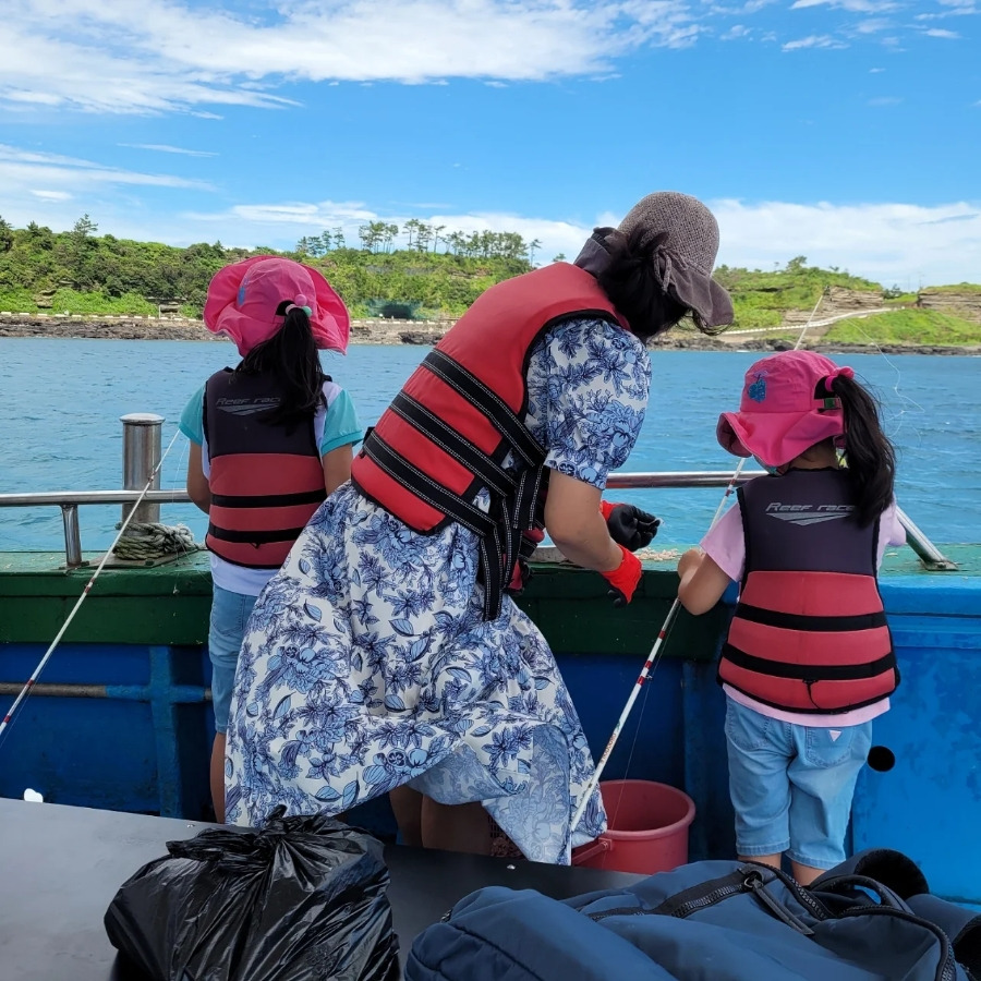 나는 두 아이의 손을 잡고 조심히 배에 올라탔다. 낚시 장소까지 배로 이동하는 동안 늘 그래왔던 것처럼, 제주의 바다는 나에게 멋진 그림을 보여주었다. 더운 여름날 시원한 바닷바람을 맞으며 나는 기분이 한껏 좋아졌다.