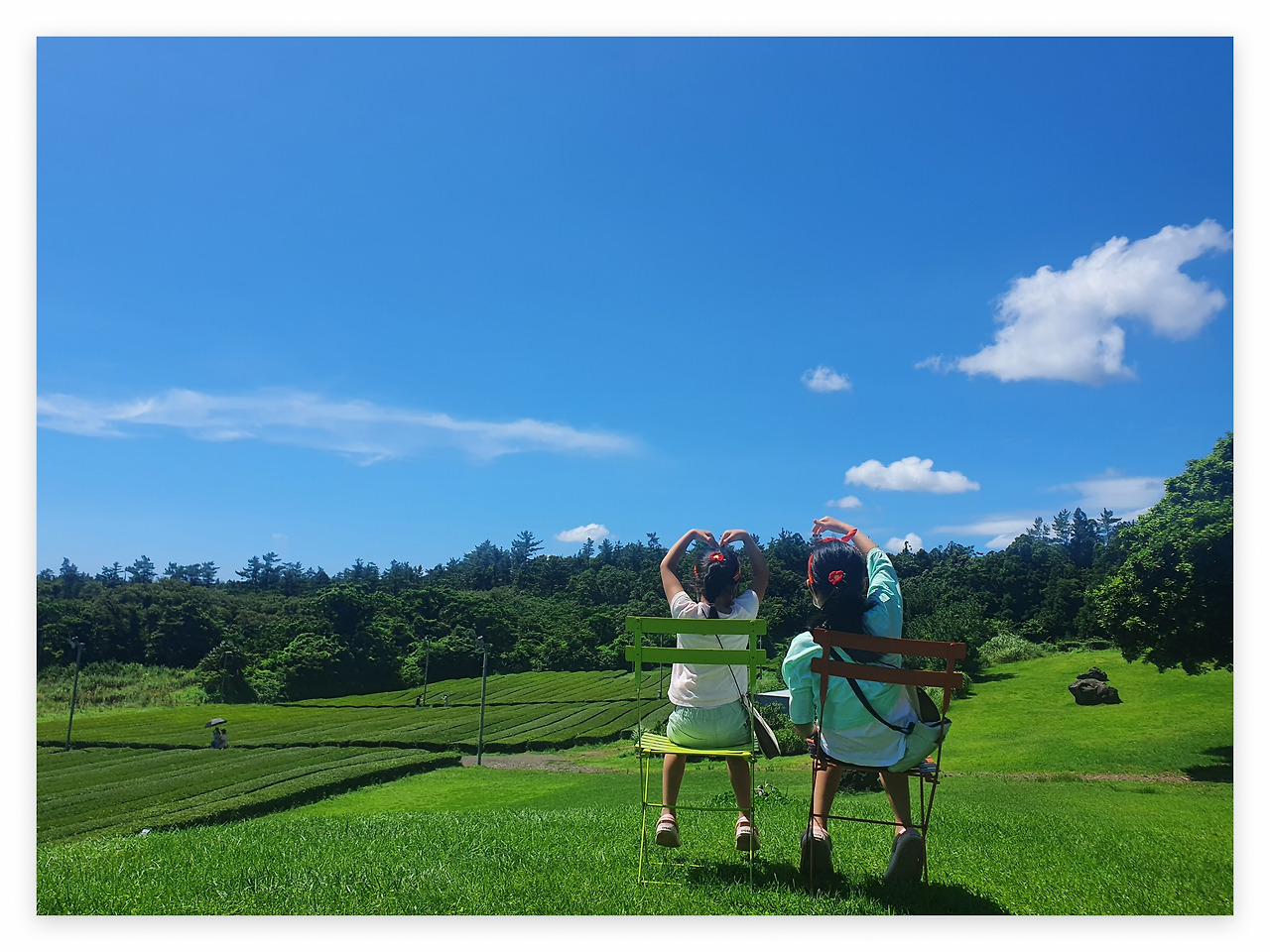 이렇게 녹차밭에서 사진을 찍고 아이스크림도 먹으며 보낸 여유로운 시간은, 더운 여름날의 쉼이 되어 주었다.