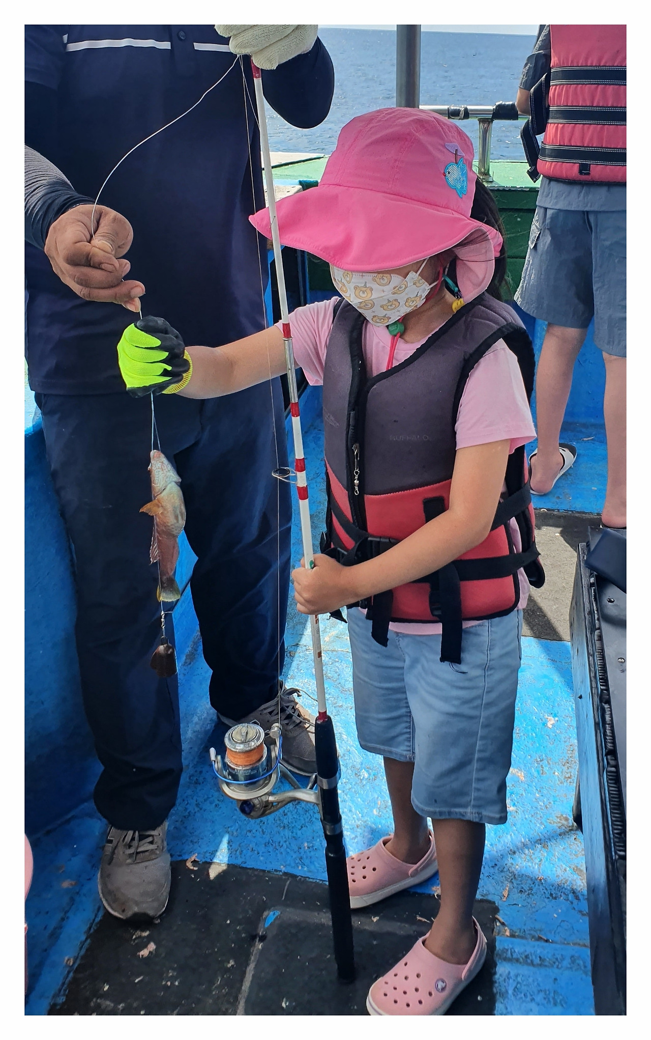선장님의 도움을 받아 낚시를 이어가던 아이들은, 그 뒤로도 한 두 마리 정도 더 낚시에 성공했다.