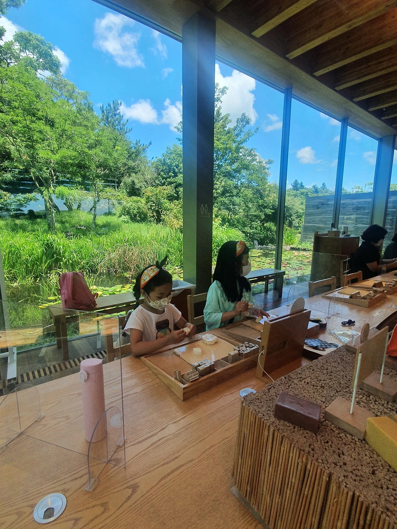 제주 하면 '오설록'을 빼놓을 수 없다. 이곳에서는 비누 만들기 체험이 있어 아이들과 함께 했다. 사실 아이들이 비누 만들기 체험을 하는 동안, 엄마인 나는 잠시 쉴 생각이었지만, 예상과 달리 비누가 생각보다 단단해 어른의 악력이 필요했다. 내가 조물조물 만져 부드럽게 만들어 준 비누를 꾸미는 건 아이들의 몫이었다. 아이들은 세상에 하나뿐인 자신만의 비누를 만들며 뿌듯해했고, 집에 돌아와서도 잘 사용하였기에, 실용성도 갖춘 체험이었다.