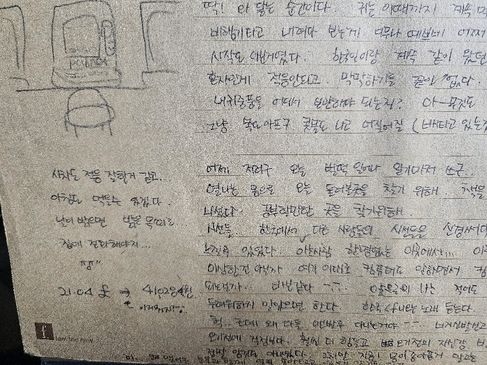 소매치기로부터 나의 짐을 지켜야 한다며 결연한 마음가짐으로 10킬로 가방을 메고 화장실로 들어갔다. 사용료도 냈다. 좁은 화장실 칸에서 여권과 현금 같은 것들을 고이 챙기고 이런저런 짐들을 정리했다. 다시 화장실 문을 열고 왔을 때는 벌써 한 시간이나 지나있었다. 화장실 앞에서 돈을 받던 직원이 손을 허리춤에 얹고 경직된 표정으로 나를 쳐다봤다. 맞아, 너무 오래 있긴 했어.