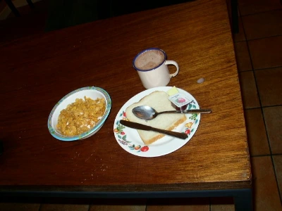 빵과 버터, 잼 그리고 커피, 코코아, 시리얼, 우유 등이 놓여 있었다. 모두 나를 쳐다보는 것만 같은 느낌에 잔뜩 주눅이 들어 식욕조차 일지 않았다. '그대로 뒤돌아 다시 방으로 올라갈까?'
