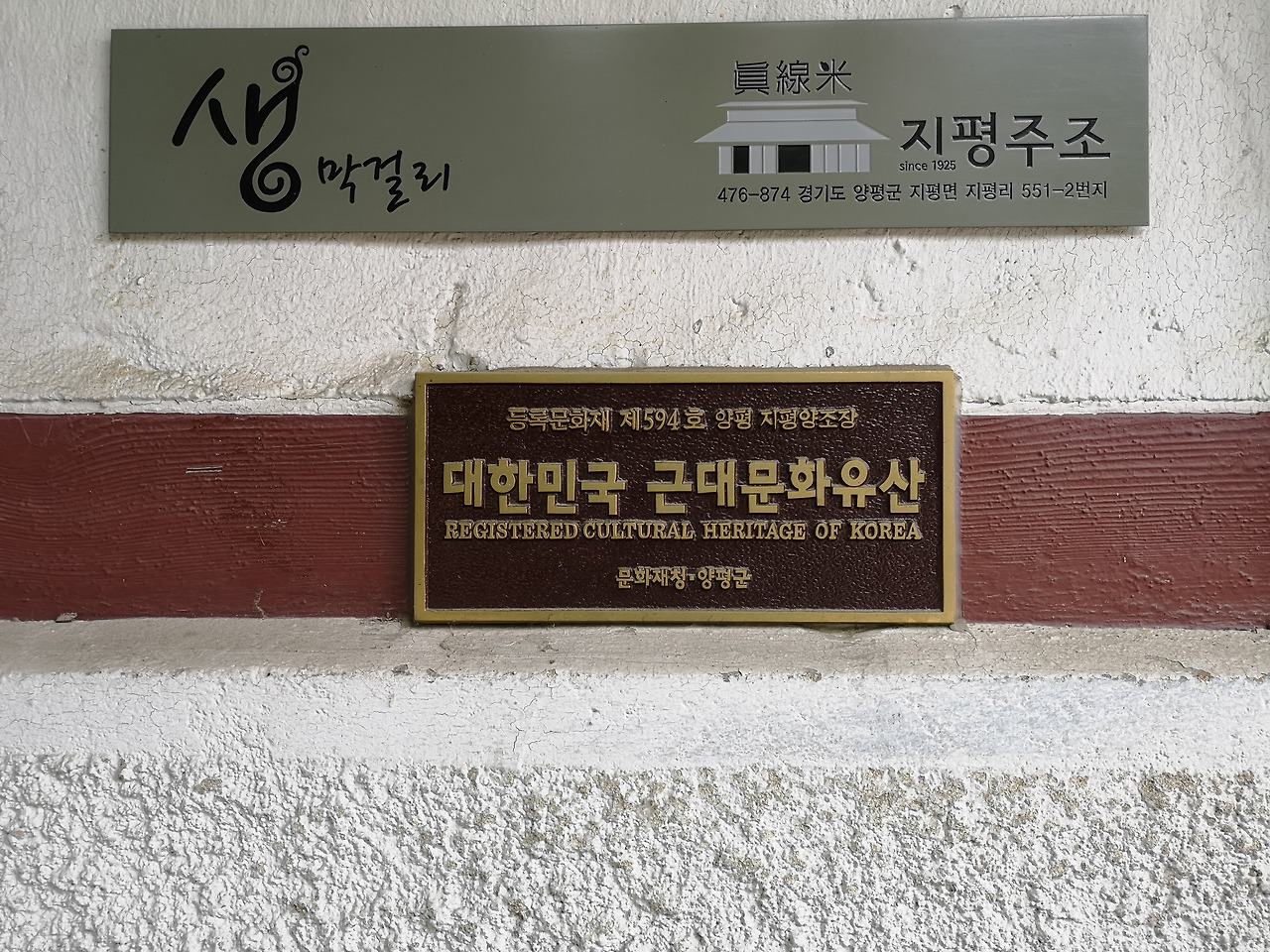 2014년 7월 1일 대한민국 근대문화유산 등록문화재 제594호로 지정된 지평양조장은 100년 가까이 술이 익어왔던 양평군 지평면에 있다. 일제 강점기인 1925년 1대 사장 이종환 씨가 세운 양조장 건물이다.
