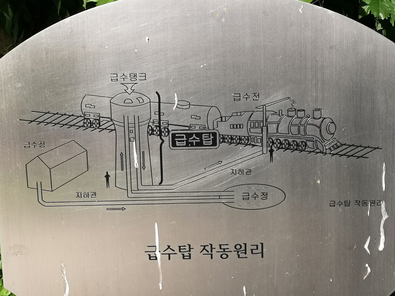 ▲ 연천역 급수탑의 설명판 급수탑의 작동원리를 그림으로 보여주고 있다.