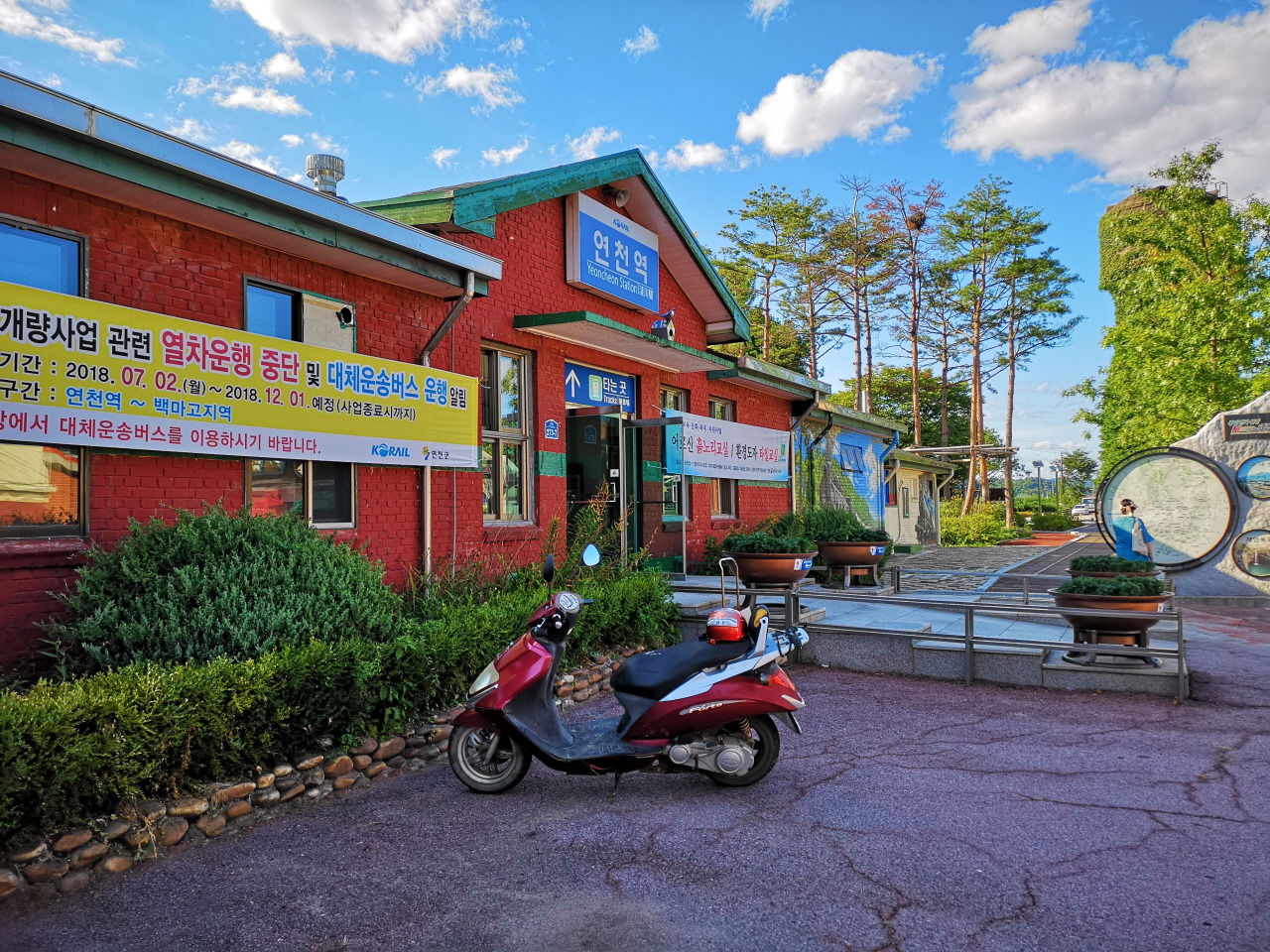 ▲ 연천역 사진 오른쪽으로 원통형 급수탑이 보인다.