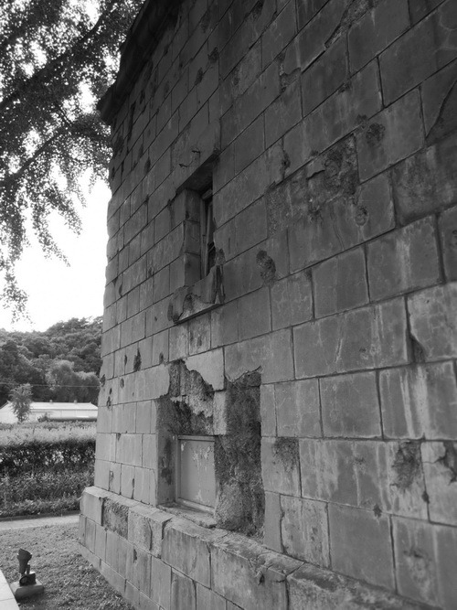 ▲ 상자형 급수탑의 옆면의 총탄 흔적 6.25 전쟁의 상흔이 있는 연천역 급수탑을 보며 새삼스럽게 전쟁의 참혹함을 느낀다.