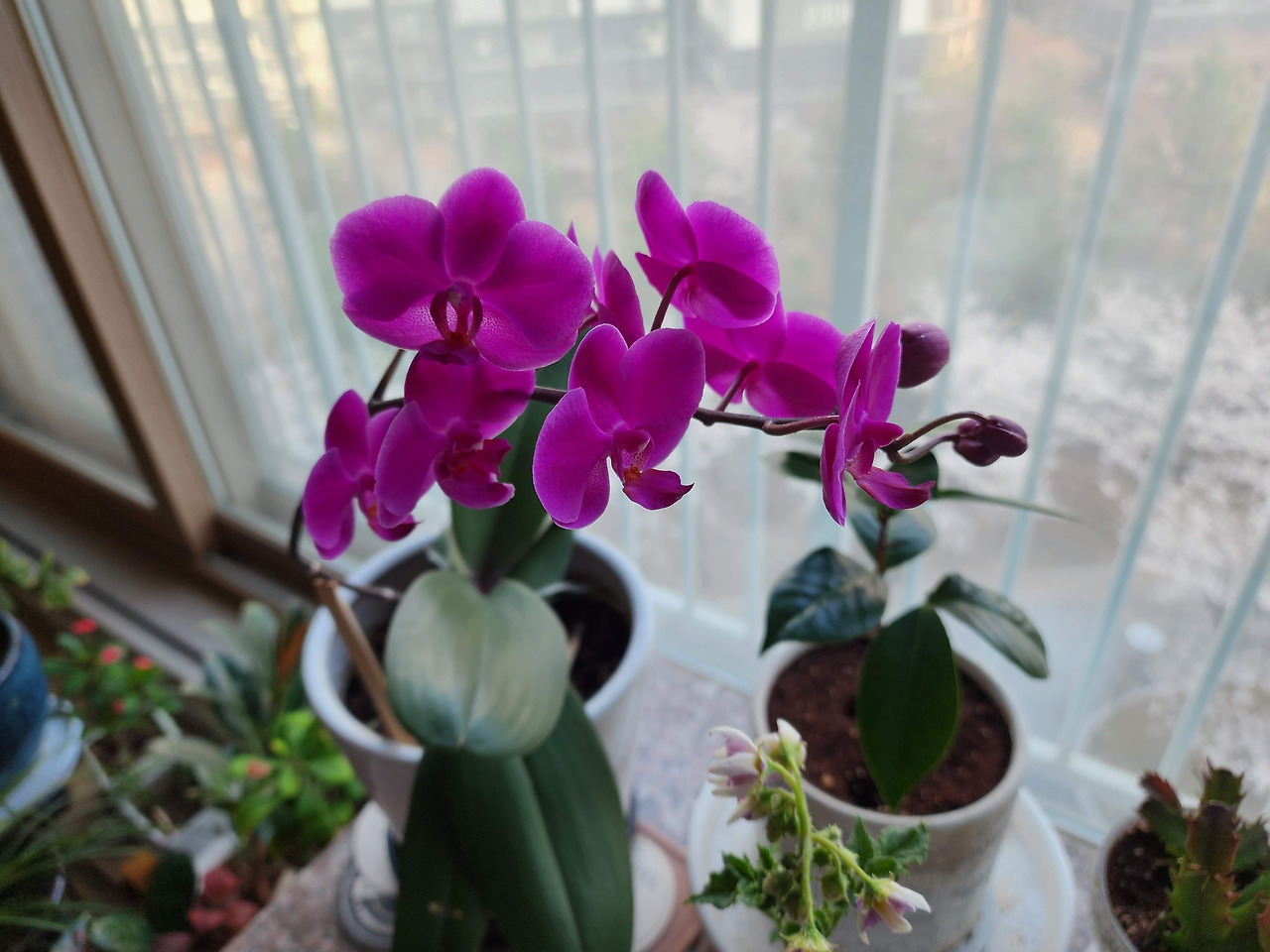 아내가 이 호접란을 살린 후 우리는 해마다 화려한 꽃을 보며 함께 봄을 맞는다. 꽃망울이 맺힌 후 차례로 피는 모습이 신기하고 아름다워 꽃망울이 하나씩 터지며 꽃을 피울 때마다 아내와 함께 탄성을 지르곤 했다. 올해 2월 어느 날에도 아내가 호들갑스럽게 부르기에 급히 가보니 호접란의 첫 꽃망울이 맺혀 있었다. 함께 이리저리 한참을 훑어보며 벌써 꽃을 본 듯 신기해했다. 12개의 꽃망울이 순차적으로 맺힌 후 차례차례 터지면서 하나씩 꽃이 필 때마다 아내의 호출은 계속되었다. 어떤 때는 내가 아내를 부를 때도 있었다. 12송이의 꽃이 다 필 때까지 하루에 한 번 이상은 이 호접란에 관심을 주며 다음 꽃이 필 때를 기다리며 지낸다.