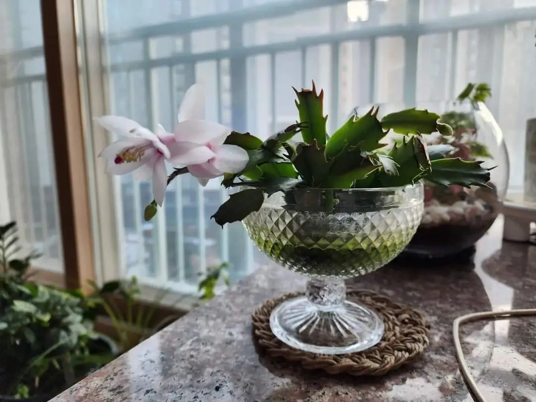 작년에 삼육대 에코팜 식물 테라피 강습에서 꽃망울만 있는 아주 작은 게발선인장을 선물로 받았다. 아내는 배운 대로 물을 채운 유리잔 속에 넣어 수경 재배를 하였다. 꽃망울이 점점 커지면서 매일매일 우리의 관심을 독차지하였다.