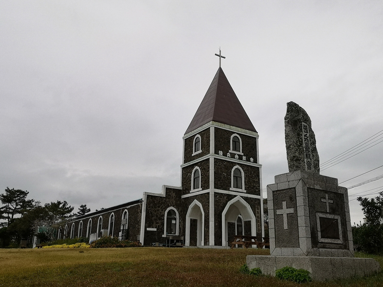 그래서 찾아간 근대문화유산이 ‘남제주 강병대 교회(등록문화재 제38호)’와 ‘제주 송악산 일제 해안 동굴진지(등록문화재 제313호)’이다. 아침부터 비가 오락가락하여 사진 찍기가 쉽지 않았지만 비닐 비옷을 사 입은 아내가 받쳐주는 우산으로 비를 가리면서 사진을 찍고 다녔다.