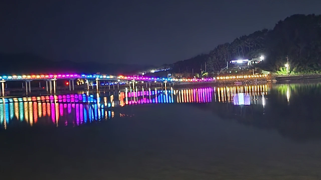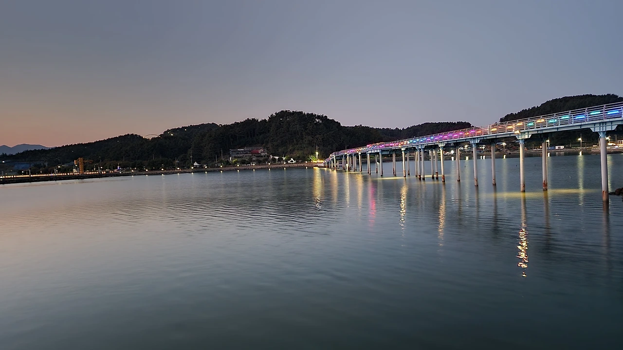 이곳은 남파랑길의 한 구간이었는데 해지개해안둘레길이 이어져 바다로 가로질러 만들어진 해지개다리의 불빛이 바닷물에 반영되어 만들어내는 멋진 풍경이 눈을 즐겁게 한다
