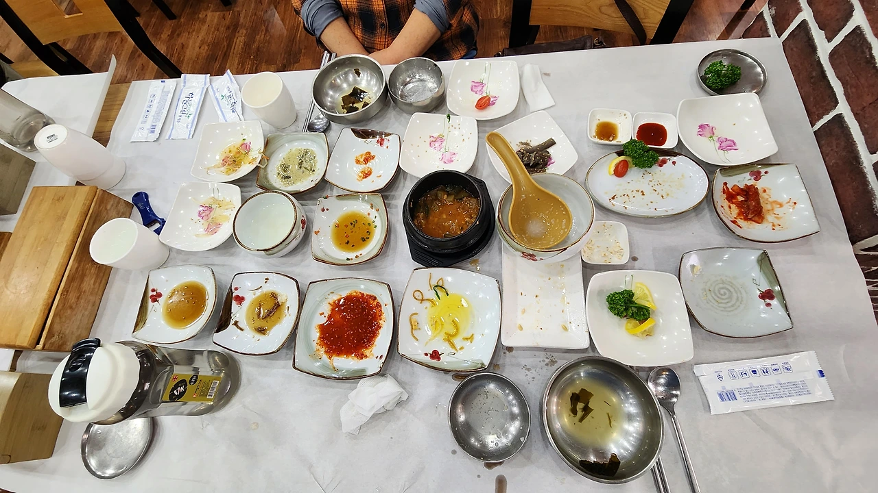 반찬의 종류가 꽤 많은 상차림이었는데 지나치게 많은 한정식들이 흔하다. 먹지 않는 음식까지 그릇 수만 많이 차리는 성의 없는 한정식들은 먹을 때마다 낭비라 생각하곤 했다.