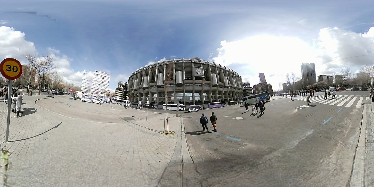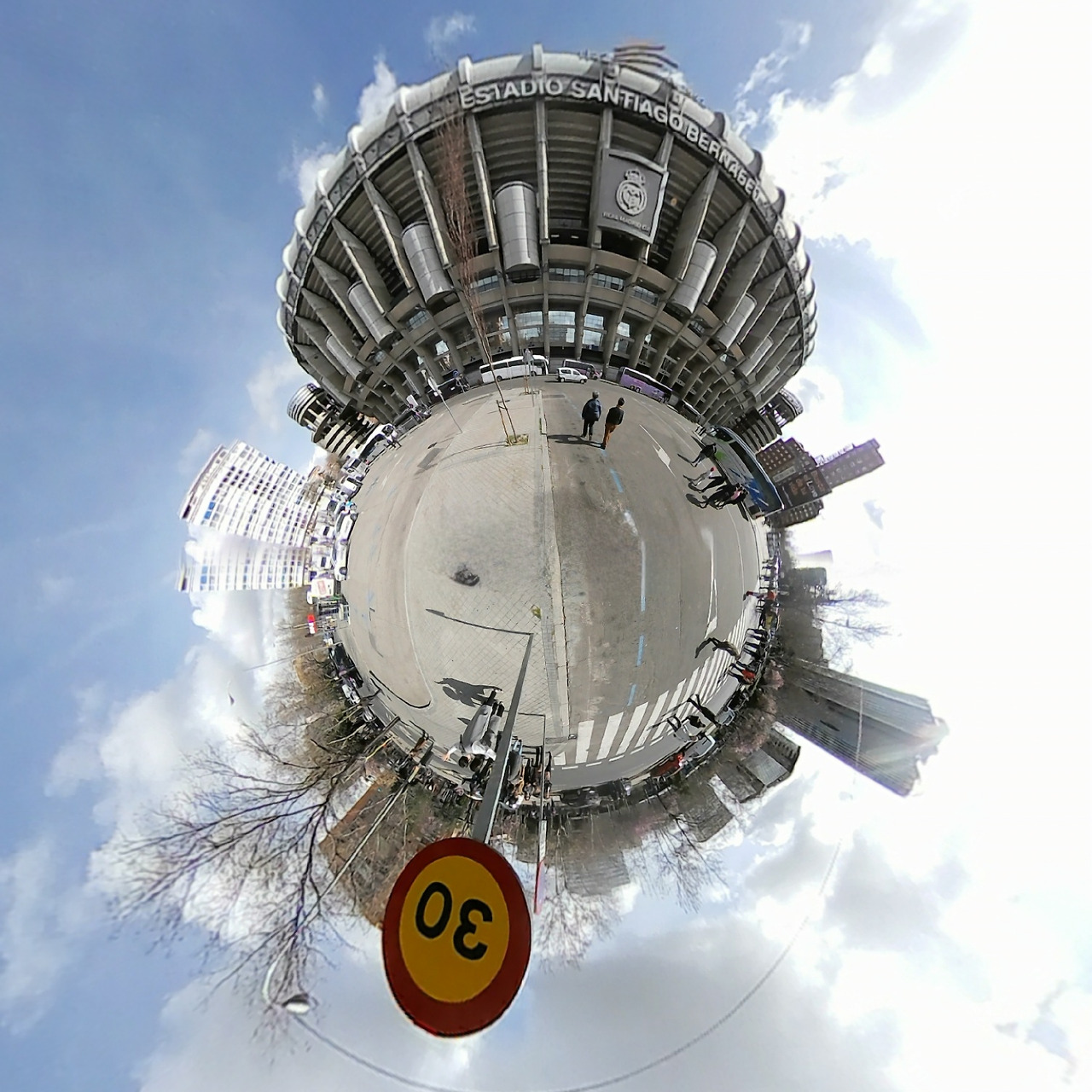 2019년 패키지로 모로코.스페인을 여행했을 때 레알 마드리드 CF의 홈구장 앞에서 찍은 360도 사진이다. 360도 사진은 한 장의 사진으로 여러 형태로 변화시킬 수 있다. 심지어는 동영상으로도 만들어 주변 모습을 한 번에 보여준다.