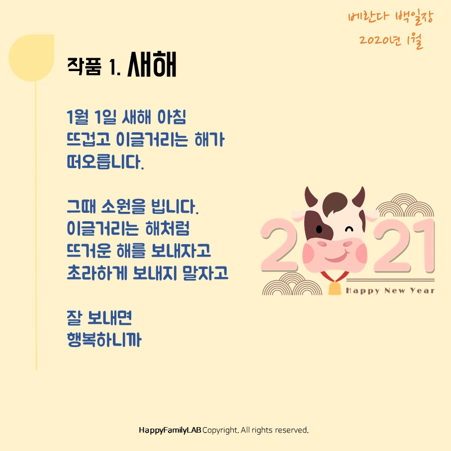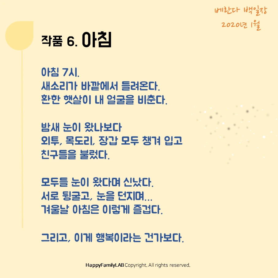 1월에도 여섯 작품을 공개하니 잠깐 시간을 내어주세요.