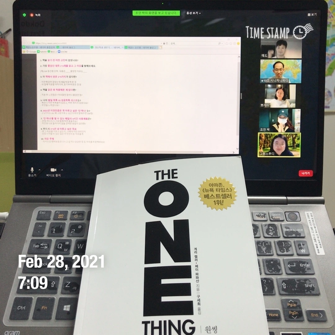 아침 6시, 자혁캠 동기인 조안님과 테드님의 <원씽> 독서모임에 참여했다. 한 달간 원씽을 읽고 삶에 적용했던 이야기를 나누며 책으로 친해졌다. 독서모임에서 다양한 사람을 만나고 색다른 생각을 듣는 것이 즐겁다. 물론 읽고 배우고 적용하는 것이 가장 중요하겠지. 독서모임이 끝나고 이윤실 대표님과 2시간 가족독서법 코칭을 했다. 시간 가는 줄 몰랐다. 책으로 만나는 인연이 참 좋다.
