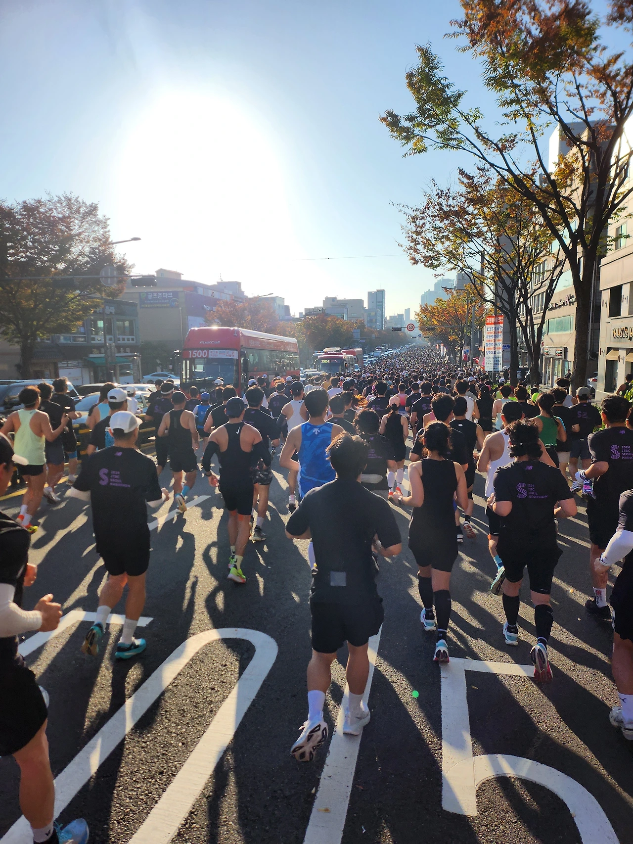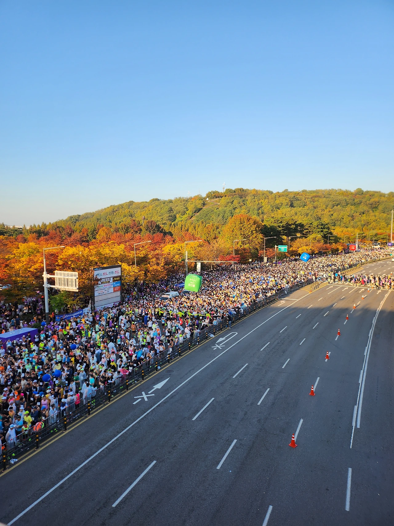 엄청난 인파가 있을 때 가장 큰 문제는 화장실이다. 소변을 보기 위해 한 시간을 기다려야 하는 엄청난 줄. 거기서 나는 화장실을 택하지 않고 그냥 달리기로 마음을 먹었다. (아.. 왜 그랬을까..) 그래도 풀코스 완주라는 부푼 기대를 안고 출발했다.