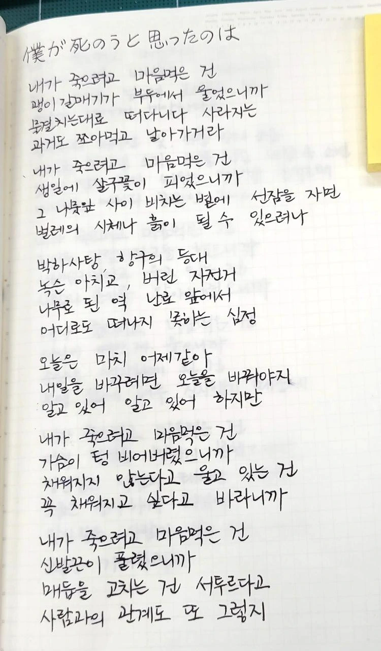 (사족 : <내가 죽으려고 마음먹은 건> (僕が死のうと思ったのは) 노래 가사 번역은 직접 했습니다.