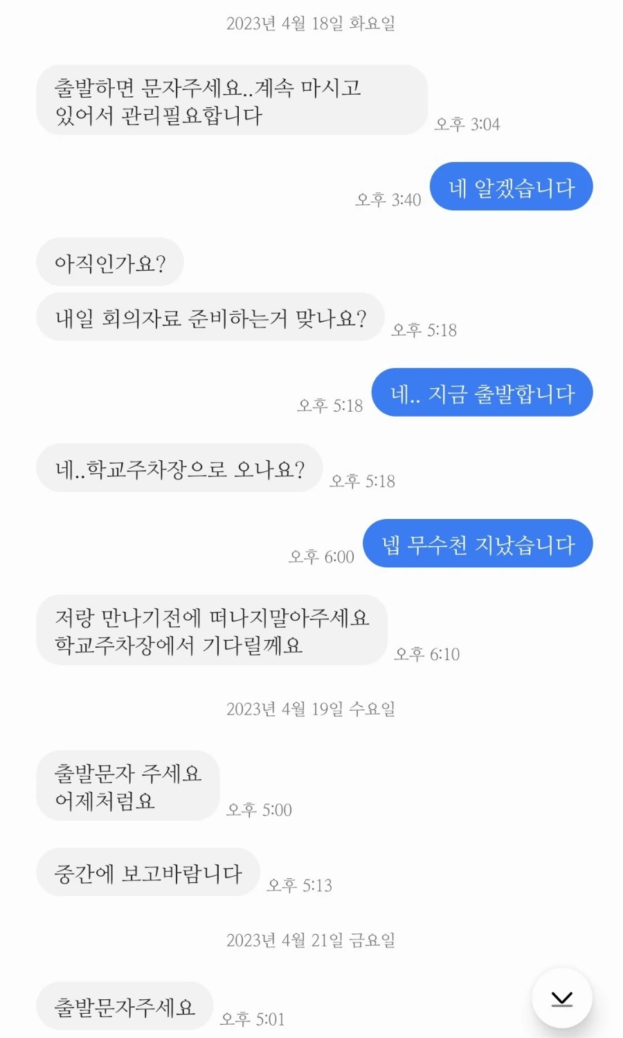 내가 저런 문자에 답장을 하고 있으면, 옆에 앉은 그는 본인 아내한테 연락하는 거 아니냐며 핸드폰 내놓으라고 윽박을 질렀다.