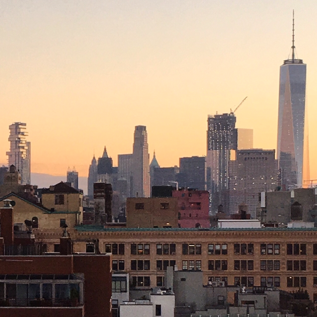 오늘도 동행한 미술잡지 기고가 빌 아저씨가 알려준 바에 의하면, 렌조 피아노는 강렬한 비대칭적인 형태로 디자인을 했다고 한다. 처음에 투자자는 뉴저지와 허드슨 강 쪽을 보고 오픈 형태로 짓자고 하였으나, 건축가 렌조는 보다 현대적이고 조소적인 현현을 주장하면서 아름다운 뉴욕 시내의 빌딩 옥상들이 산업적인 특성을 반영하고 있다며 뉴욕 빌딩들의 특징인 옥외 비상계단의 영역과 하이라인 철길을 예술적으로 포함하면서 이 건물의 동쪽으로(현재와 같은 방향의 구조로) 설계하였다. 여전히 꼭대기층에서 허드슨 강 너머로 뉴저지가 보이며 남쪽으로는 자유의 여신상과 프리덤 타워가 보인다(아래 사진). 빌은 2011년부터 2014년 뉴 휘트니 빌딩이 완공되어가는 모습을 첼시 그의 집에서부터 허드슨 강을 따라 매일 조깅하면서 바라볼 수 있었다고 했다.
