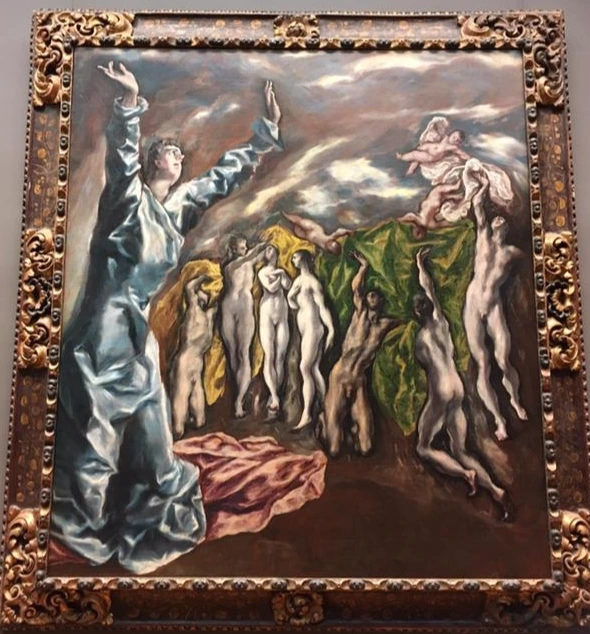 그로테스크한 느낌마저 주는 엘 그레코의 화풍은 종교적 권능 이상의 거역할 수 없는 자연의 섭리 혹은 무언가를 말하는 듯하다. 이 작품 원화를 자세히 들여다보면 건물과 풍경 속에 조그만 사람들이 보인다.