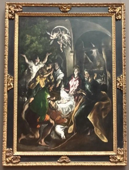 엘 그레코는 종종 유명한 다른 작품을 토대로 복제품을 즐겨 만들었다. 이 작품은 Juan de Ribera의 Patriarch of Antioch and archbishop of Valencia를 참조하였으나 본 버전보다 더욱 높은 퀄리티를 자랑한다. 엘 그레코의 후기 작품들은 쉬지 않는 역동성이 가미되어 마치 춤추는 듯한 추상주의에 가까운데, 이 그림에서는 예수의 탄생을 놀라워하고 흥분해하는 양치기들의 제스처를 나타내고 있다.
