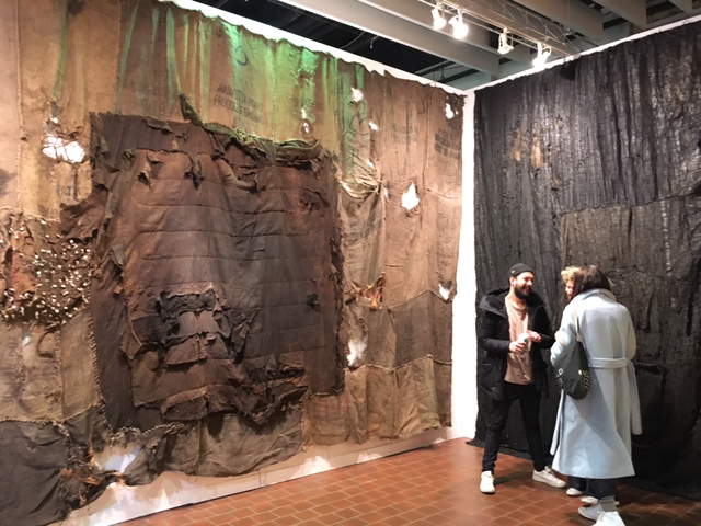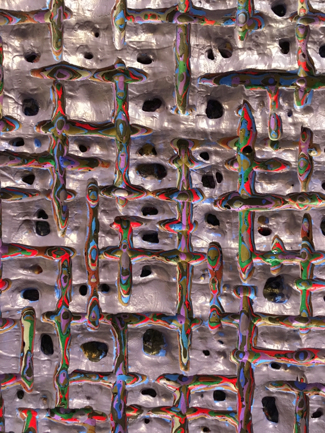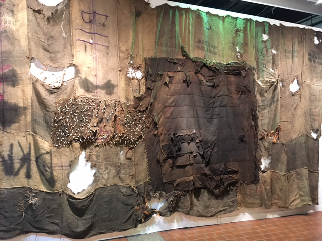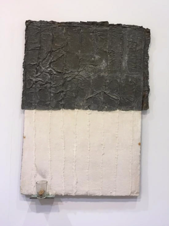 Spazio onche piu che tempo, 1971, inner tube collage and gouache on bindakote cardboard laid on jute