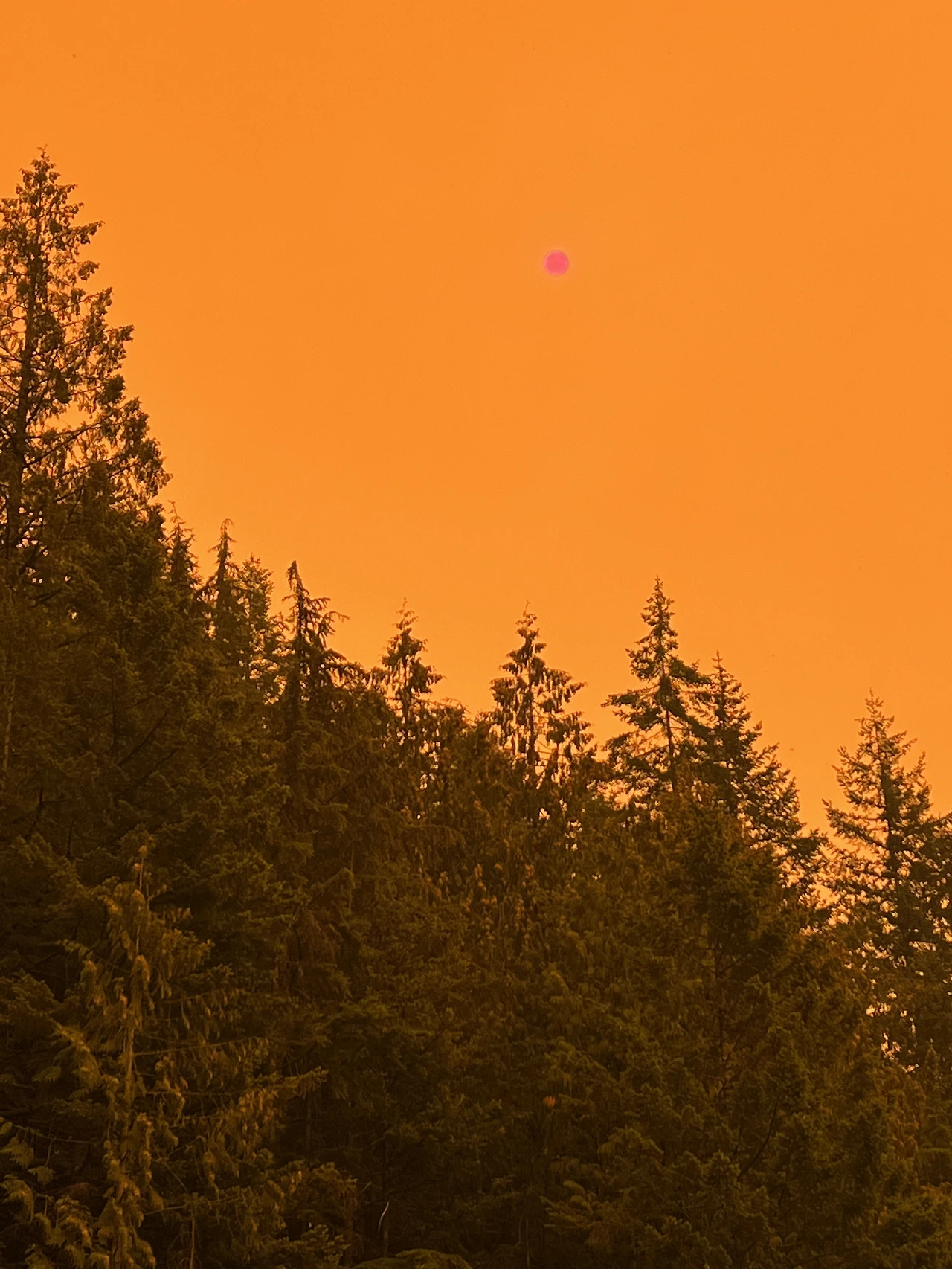 하이킹을 시작했을 땐 몰랐다. 하늘이 점점 불타오르고 있다는 것을. 어느 순간 공기가 매캐해지더니, 하늘이 점점 붉어지고, 마치 세상의 종말이 다가온 것처럼 불길한 붉은빛이 사방을 감싸기 시작했다. 우리가 서둘러 산을 빠져나왔을 때, 드디어 핸드폰이 터지면서 경고 문자를 받았다.
