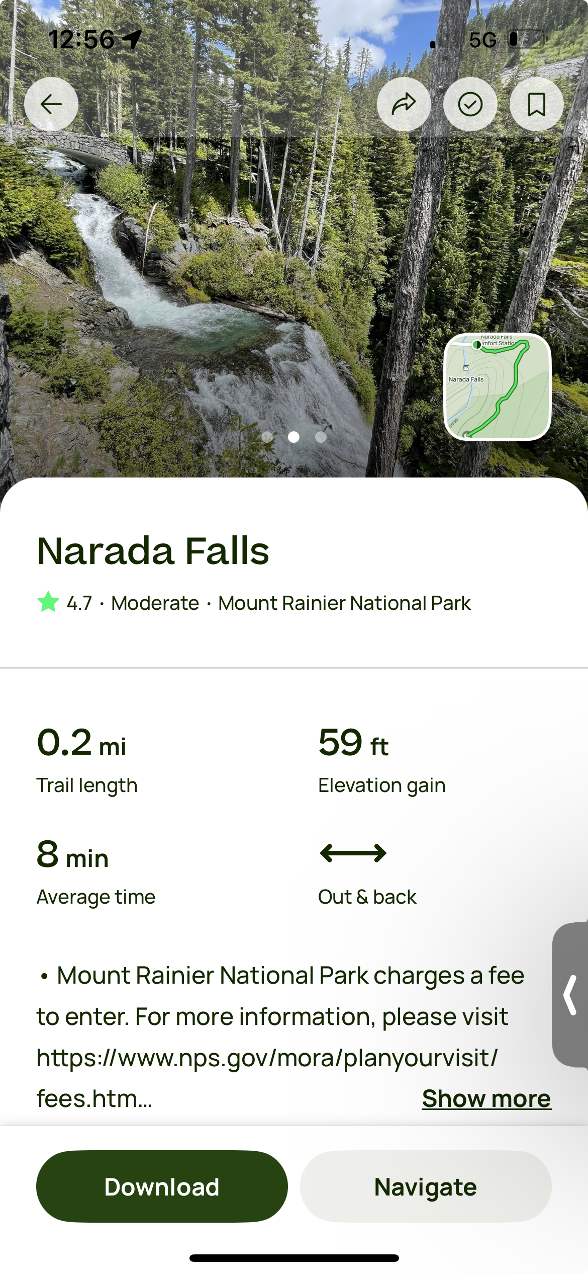 세 번째로 들린 곳은 Narada Falls이다. 이곳에서는 꼭 트레일을 걷지 않아도 잠깐 차를 세우고 폭포에서 떨어지는 시원한 물줄기를 잠시 감상할 수 있다. 하루에 눈이 하얗게 쌓인 설산과, 협곡, 폭포, 모두의 대자연을 즐기는 꽉꽉 채운 하루 일정이다.